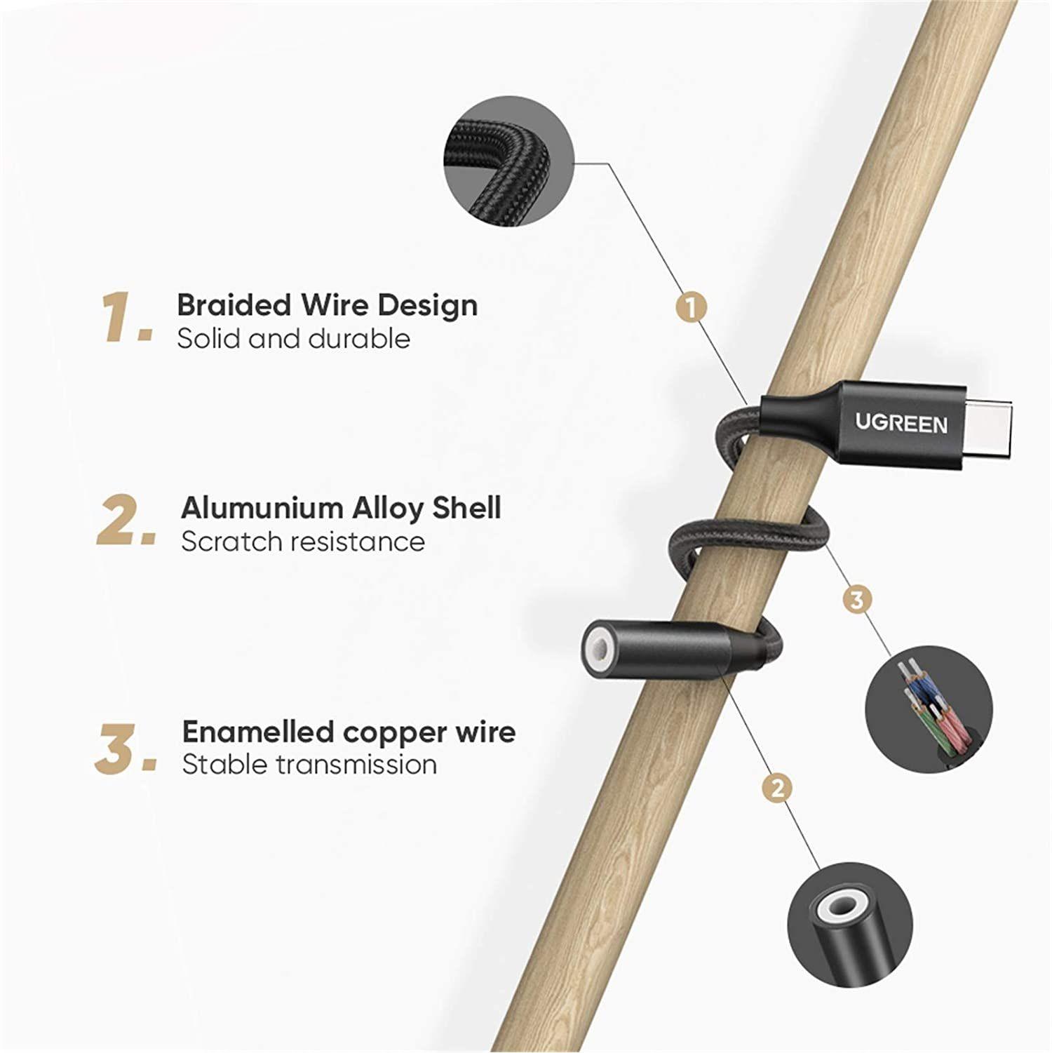 ✨Ugreen UG70858AV142TK 0.1m dây dù đầu bọc nhôm màu đen Cáp chuyển usb type c sang 3.5mm - HÀNG CHÍNH HÃNG