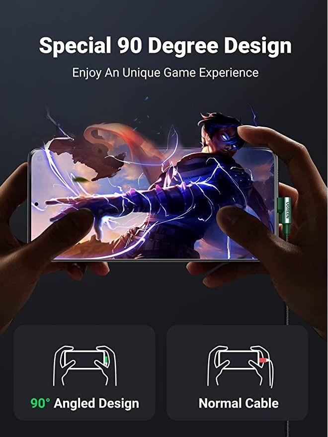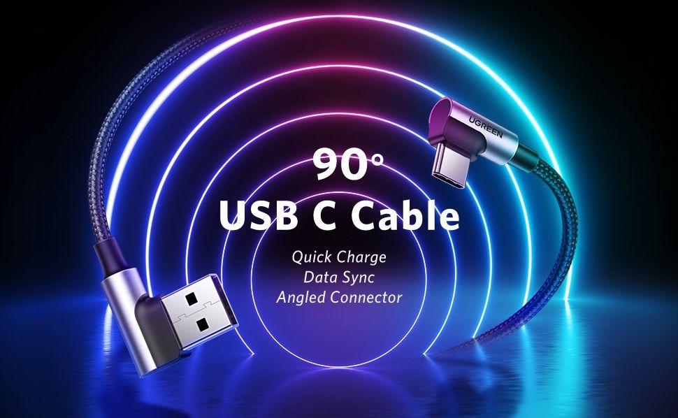 ✨Ugreen UG70875US176TK 3M màu Đen 3A Cáp sạc , truyền dữ liệu USB 2.0 sang USB-C vuông góc 90 độ dây dù - HÀNG CHÍNH HÃNG