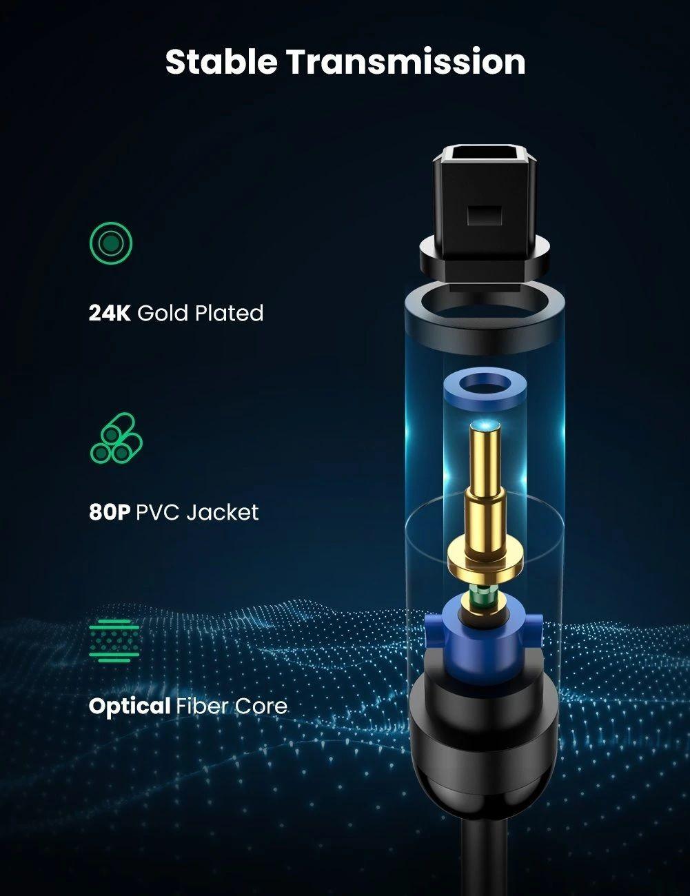Review Cáp audio quang Toslink Optical UGREEN 70890 | Hỗ trợ âm thanh 5.1/ 7.1 | Đầu cáp mạ vàng |