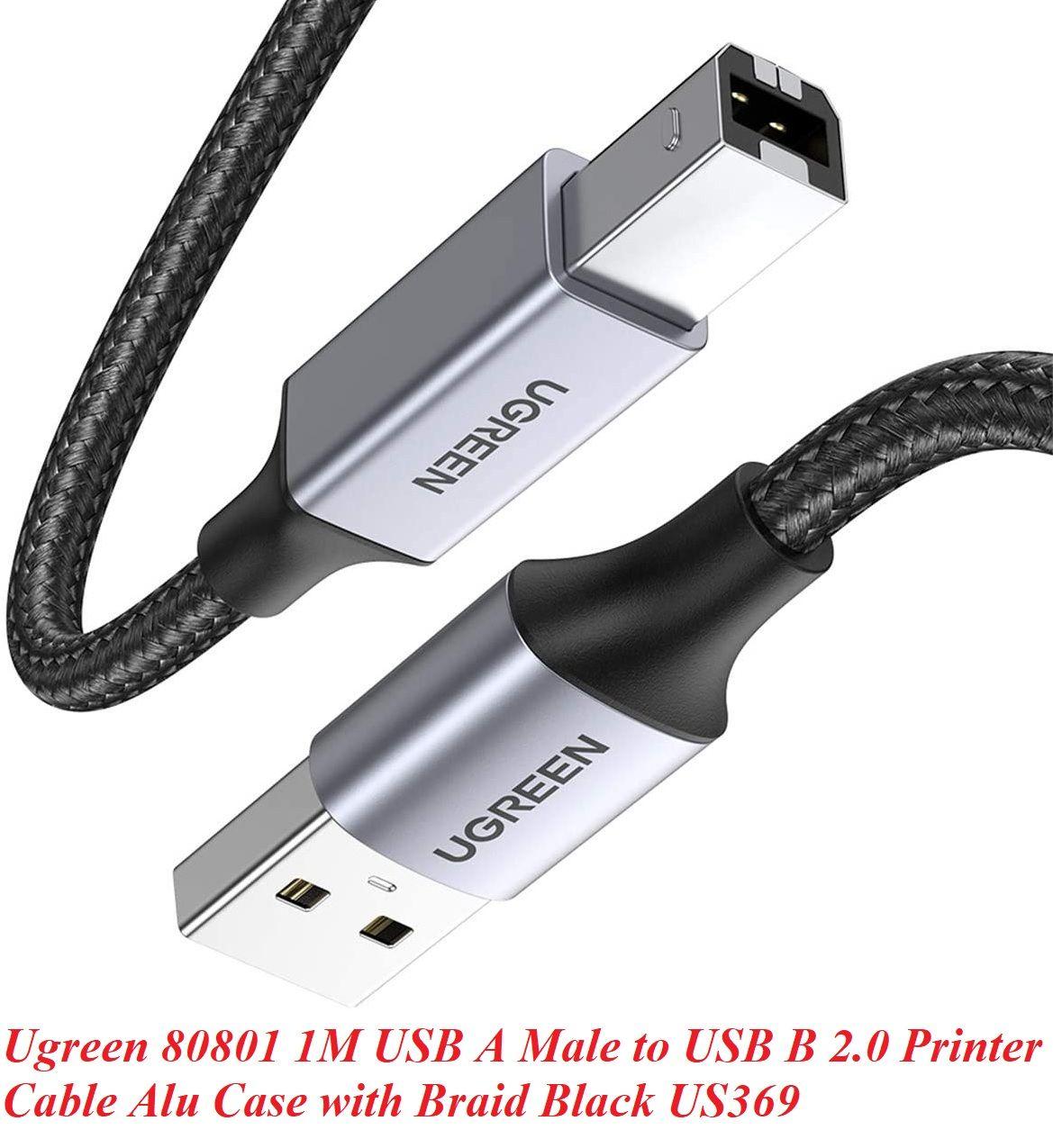 ✨Ugreen UG80801US369TK 1M đầu nhôm dây bọc lưới chống nhiễu cáp máy in màu Đen 2.0 USB A sang B - HÀNG CHÍNH HÃNG
