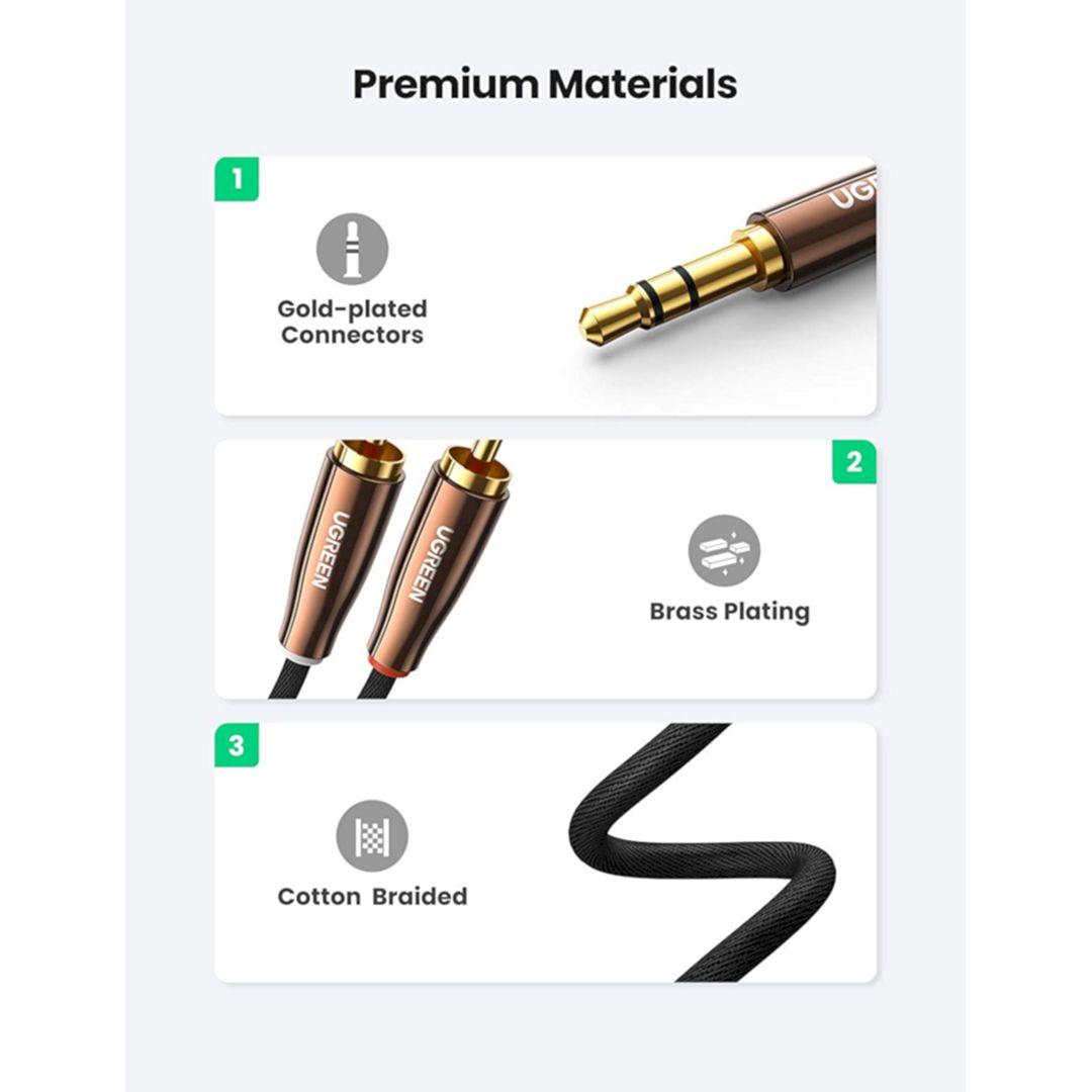 ✨Ugreen UG80844AV170TK 0.5M Màu Đen Đầu cáp Màu Nâu Cáp chuyển đổi âm thanh 3.5mm sang 2 cổng RCA - HÀNG CHÍNH HÃNG