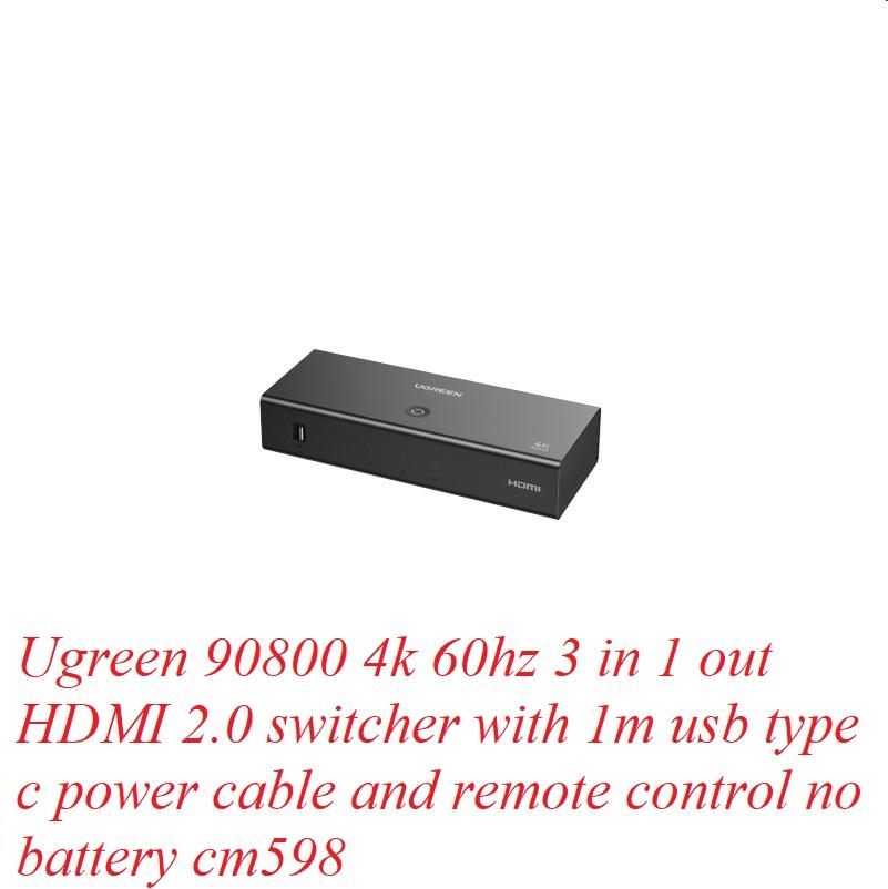 ✨Ugreen UG90800CM598TK 4K60Hz Bộ gộp HDMI 2.0 3 vào 1 ra kèm cáp cấp nguồn USB-C dài 1M + remote - HÀNG CHÍNH HÃNG