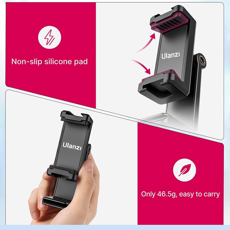 ✨Ulanzi ST-22 - Kẹp Điện Thoại Gắn Tripod, Xoay 360°, Lật Sau 180°, Hỗ Trợ 2 Ngàm Mở Rộng - Hàng Chính Hãng