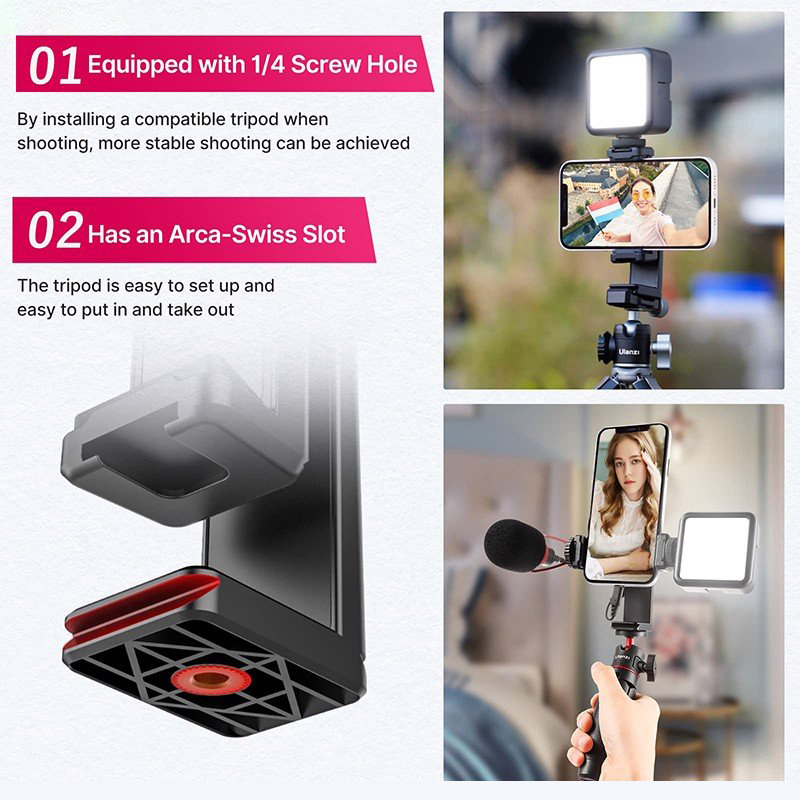 Mua tại TiktokUlanzi ST-22 là một kẹp điện thoại đa năng, được thiết kế thêm 2 ngàm mở rộng để gắn micro, đèn, các phụ kiện hỗ trợ chụp ảnh quay phim. Ngoài ra, có thể điều chỉnh xoay 360°, lật 180° về phía sau giúp hỗ trợ nhiều góc chụp khác nhau để tạo ra những khung ảnh chân thực, sống động. TÍNH NĂNG CƠ BẢN