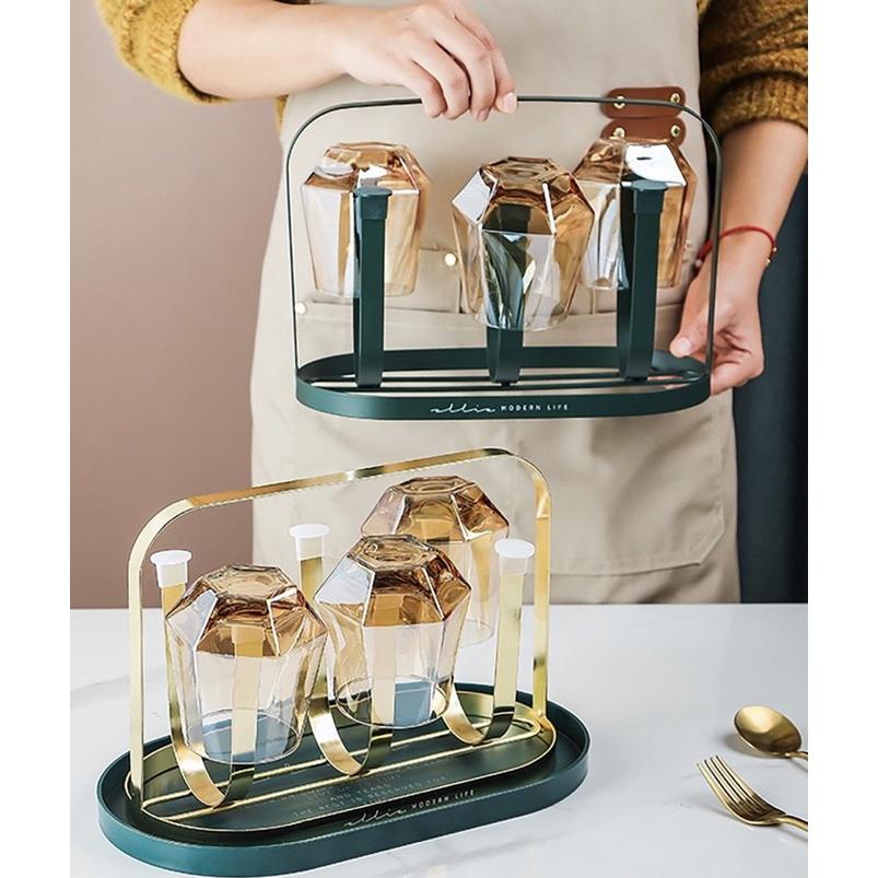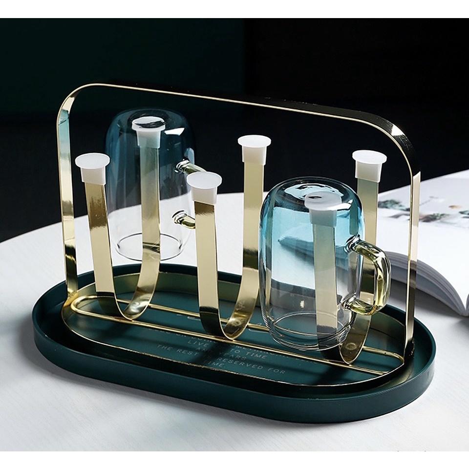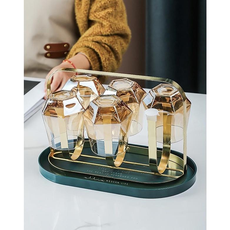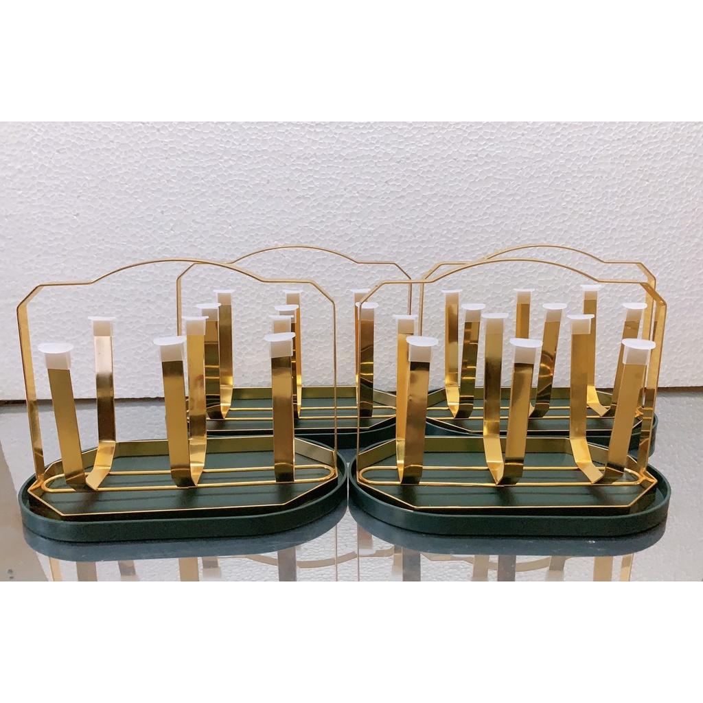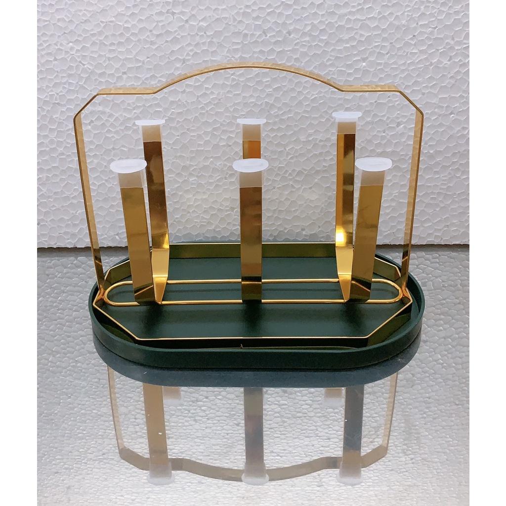 Giá úp ly, kệ úp cốc, chất liệu hợp kim mạ vàng sang trọng, Kèm khay hứng nước