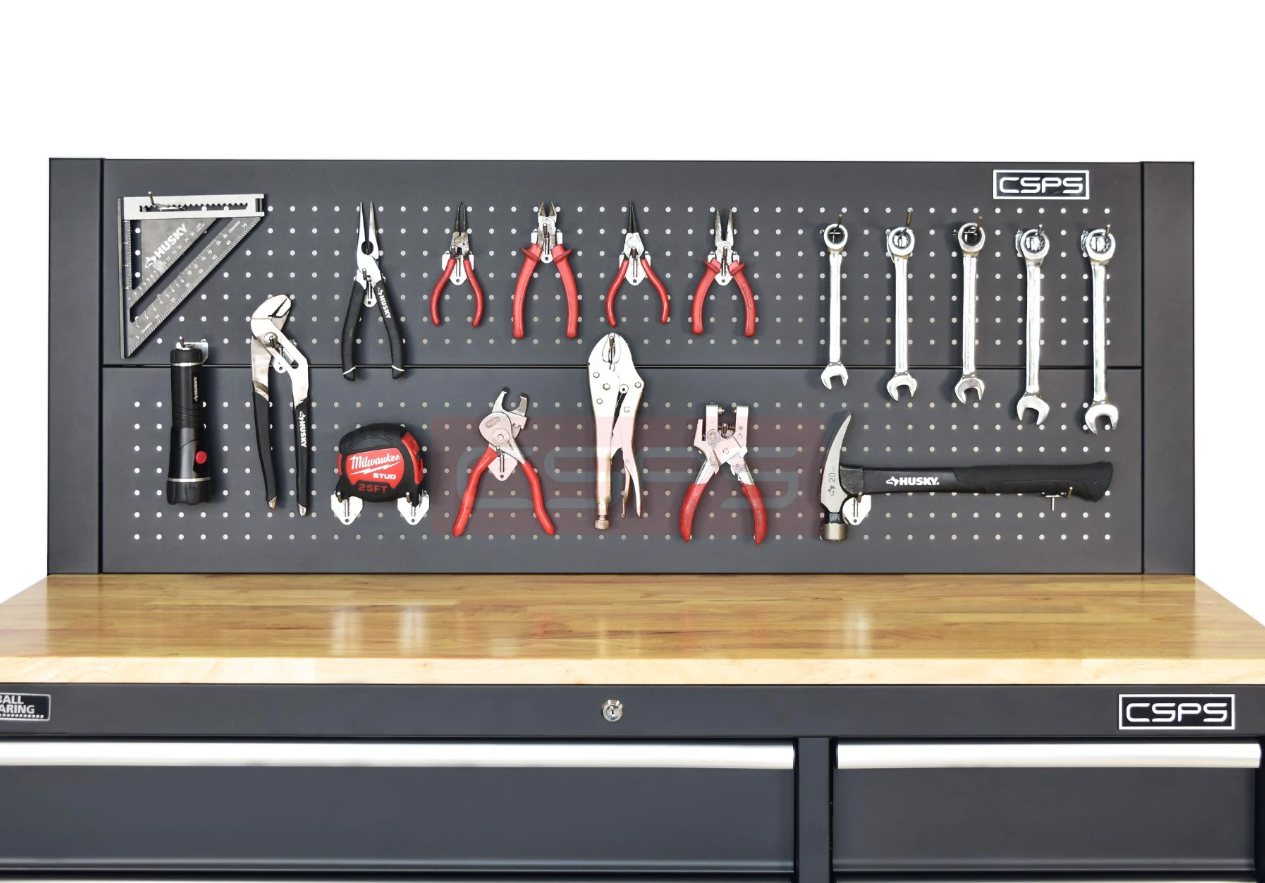 Vách lưới 132cm, giúp bạn tiết kiệm và tối ưu không gian làm việc. Là một phụ kiện đi kèm với Tủ 132cm - 10 hộc kéo, giúp người thợ có thêm không gian treo dụng cụ khi làm việc. / CSPS 132 cm Pegboard back wall is an option for CSPS utility cart 132cm – 10 drawers, helps workers have more space to hang the equipment during working. Vách lưới CSPS 132 cm, giúp bạn sắp xếp khu vực làm việc hiệu quả, là một trang bị cần thiết cho nhà máy, garage, cửa hàng hay văn phòng làm việc CSPS 132 cm Pegboard back wall which is suitable for workshop, factory, garage, shop, office… will help you organize working area efficiently.