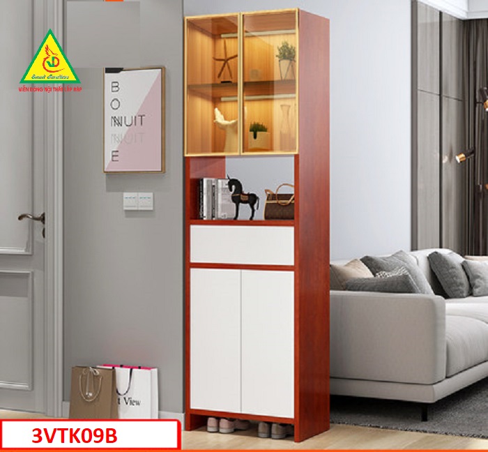 Vách ngăn tủ kệ phòng khách và nhà bếp bằng gỗ MDF là một lựa chọn phổ biến và đa dạng.