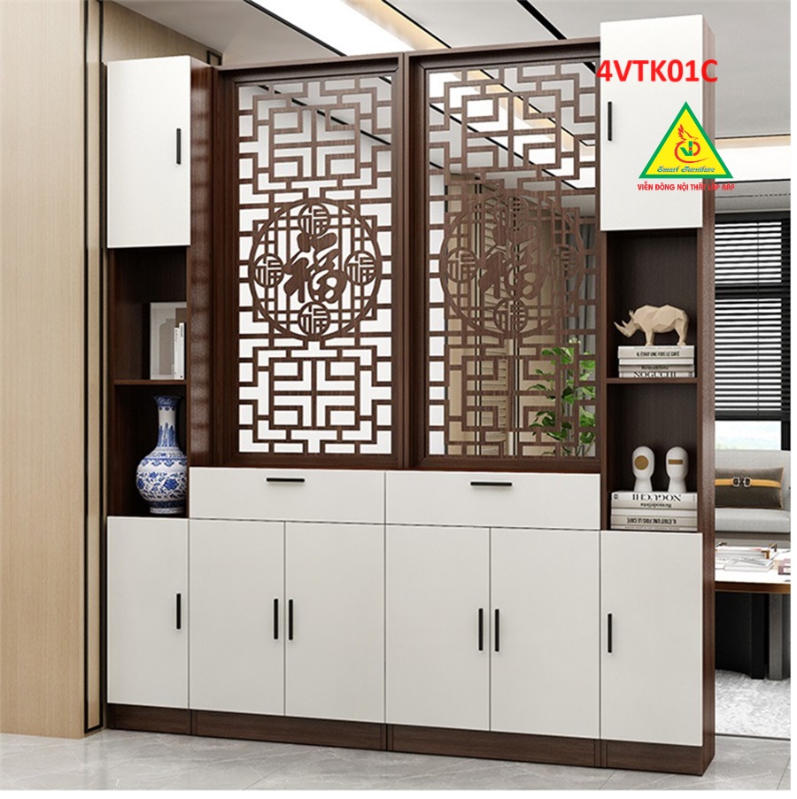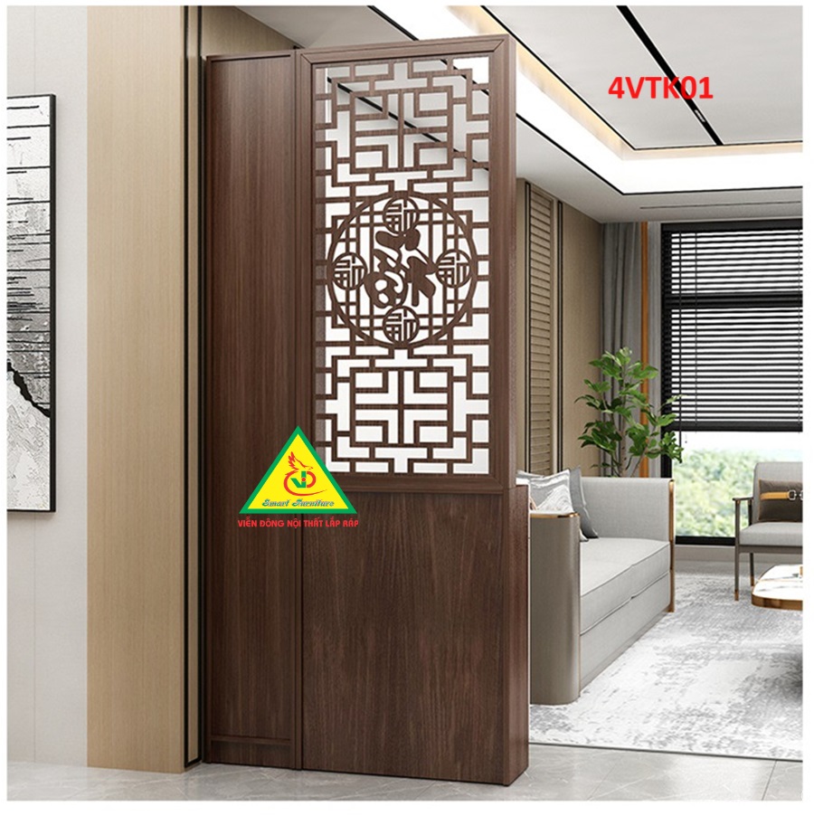 Vách ngăn còn có tủ giúp lưu trữ những vật dụng cá nhân của gia chủ , tận dụng được không gian sống tốt hơn. Sản phẩm lắp ráp dễ dàng di chuyển khi cần thiết.