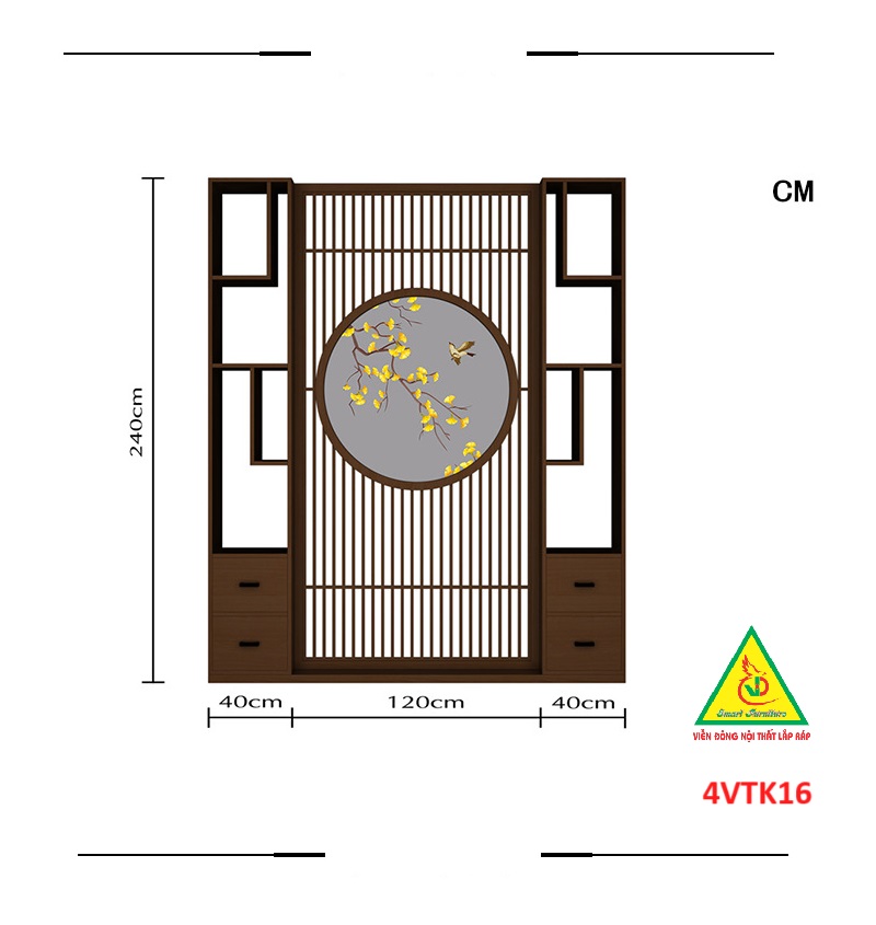 Vách ngăn còn có tủ giúp lưu trữ những vật dụng cá nhân của gia chủ , tận dụng được không gian sống tốt hơn. Sản phẩm lắp ráp dễ dàng di chuyển khi cần thiết.