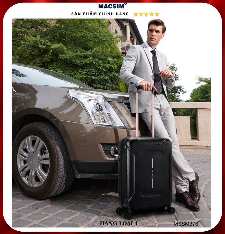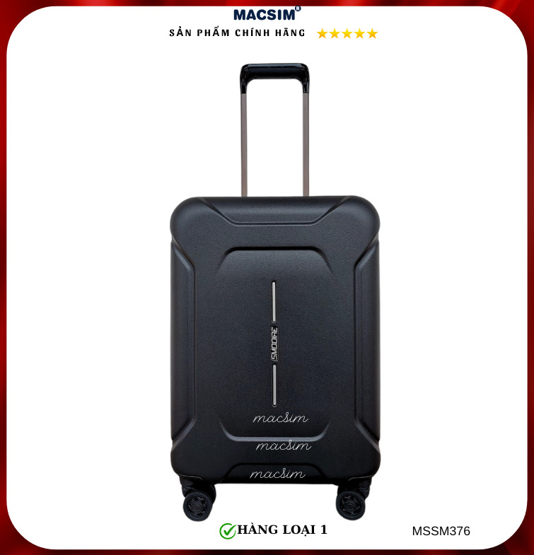 Vali Macsim được làm từ chất liệu nhựa nguyên chất PC. Tấm lót bên trong Poliester 150D xuất xứ Trung Quốc được REACH kiểm nghiệm và phê duyệt, bánh xe 360 độ hãng Hinomoto của Nhật ; Khóa kéo thương hiệu SBS xuất xứ Trung Quốc, Khóa TSA hãng Master Lock của Mỹ.  Thiết kế vali đơn giản lịch lãm vô cùng sang trọng, bền bỉ, tạo dấu ấn phong cách thời trang cá nhân của bạn trên mọi cuộc hành trình. Vali cao cấp Macssim thích hợp với những người thường xuyên di chuyển cần chiếc vali nhẹ, có độ bền tốt.