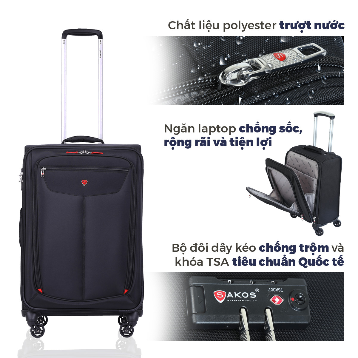 *** Vali kéo vải Sakos Champion: XỨNG ĐÁNG LÀ NHÀ VÔ ĐỊCH *** Champion là bộ sưu tập vali kéo vải trượt nước vượt trội từ SAKOS. Với những đặc tính ưu việt như chất liệu cao