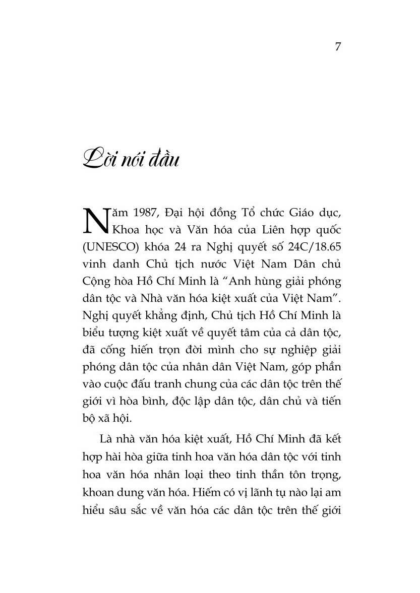 Sinh thời, Chủ tịch Hồ Chí Minh rất coi trọng văn hóa và việc gìn giữ, phát huy bản sắc văn hóa Việt Nam. Hệ thống các quan điểm, lý luận về văn hóa trong tư tưởng Hồ Chí Minh là kết tinh của những giá trị văn hóa phương Đông và phương Tây, của truyền thống và hiện đại, của dân tộc và quốc tế, là nhân cách, bản lĩnh văn hóa của một nhà văn hóa kiệt xuất; là sự vận dụng sáng tạo những lý luận về văn hóa của chủ nghĩa Mác - Lênin. Tu tưởng của Người về văn hóa dẫn dắt, định hướng việc xây dựng, phát triển, nâng cao, khẳng định tầm vóc nền văn hóa Việt Nam.
