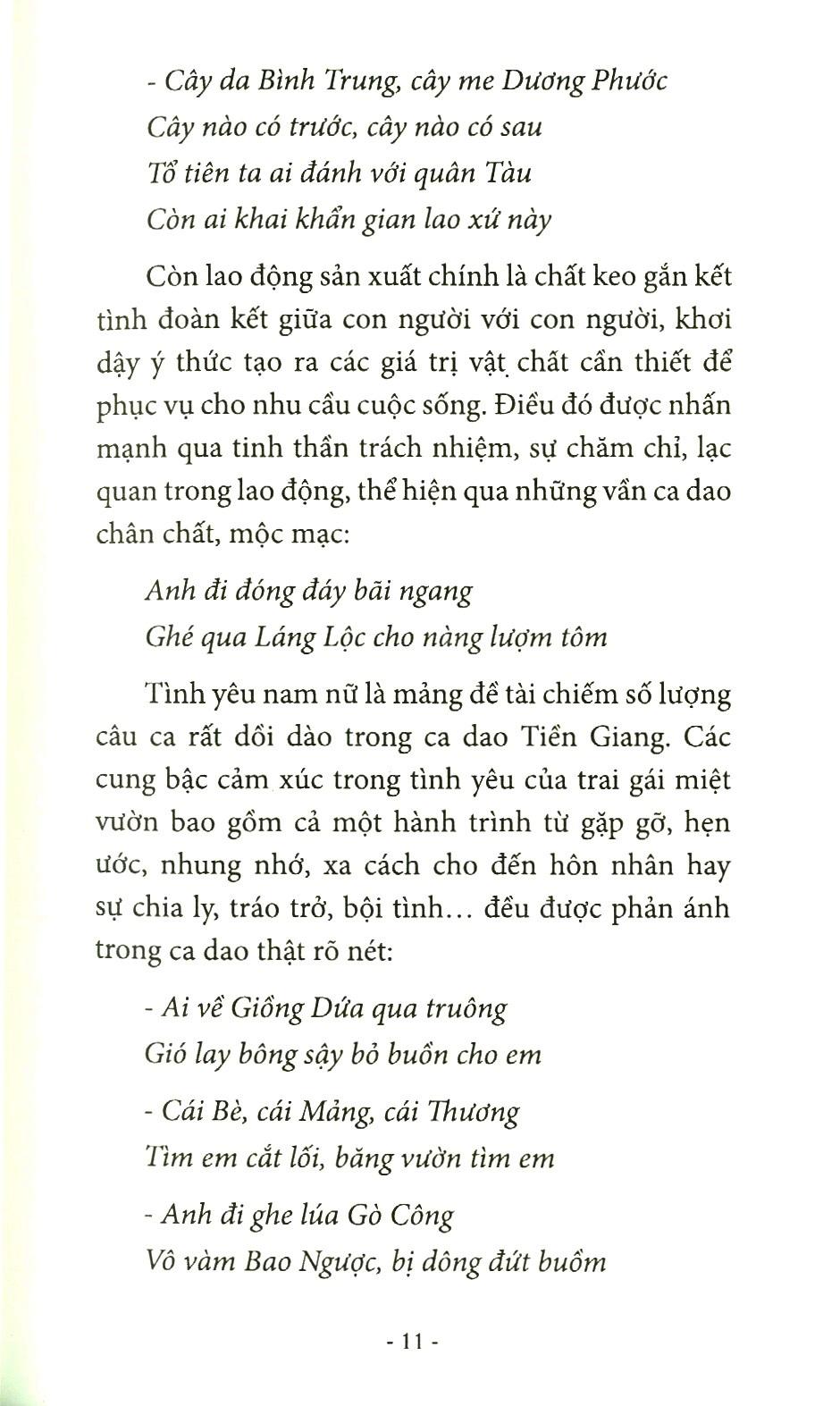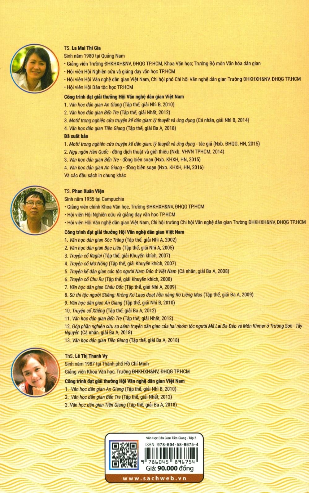"Văn học dân gian Tiền Giang được Khoa văn học, Trường Đại học Khoa học Xã hội và nhân văn, Đại học Quốc gia TPHCM triển khai sưu tầm trong 2 đợt với tổng số cộng tác viên mà nhóm sưu tầm điền dã tiếp xúc là 1851 người, làm việc tại các địa bàn xã trong thành phố Mỹ Tho, các huyện Chợ Gạo, Gò Công Đông, Gò Công Tây, huyện Châu Thành, Cái Bè, Cai Lậy, Tân Phước.