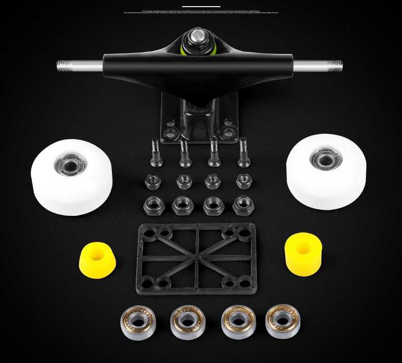 - Chất liệu khung bánh trục ván: Hợp kim loại to siêu bền và chắc chắn giúp ván chịu dc 120kg tải trọng.