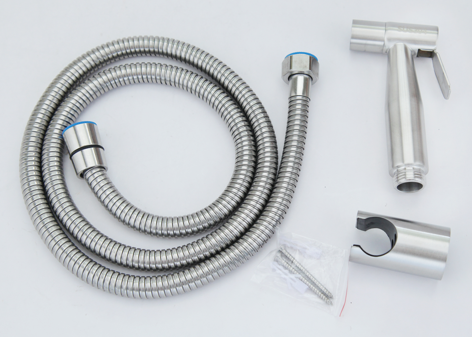 01 bộ xịt vệ sinh Inox 304 (gồm: 01 đầu xịt + 01 dây sen Inox 304 + 01 gác tay sen, ốc vít và tắc kê bắt tường)