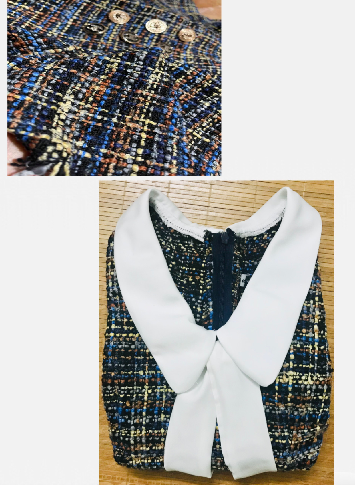 Váy liền kèm belt - Chất liệu: Dạ Tweed - Màu: xanh Navy - Size: S M L + Số đo cho size S: Ngực 80-85(cm), 48-51(kg) + Số đo cho size M: Ngực 85-88(cm),