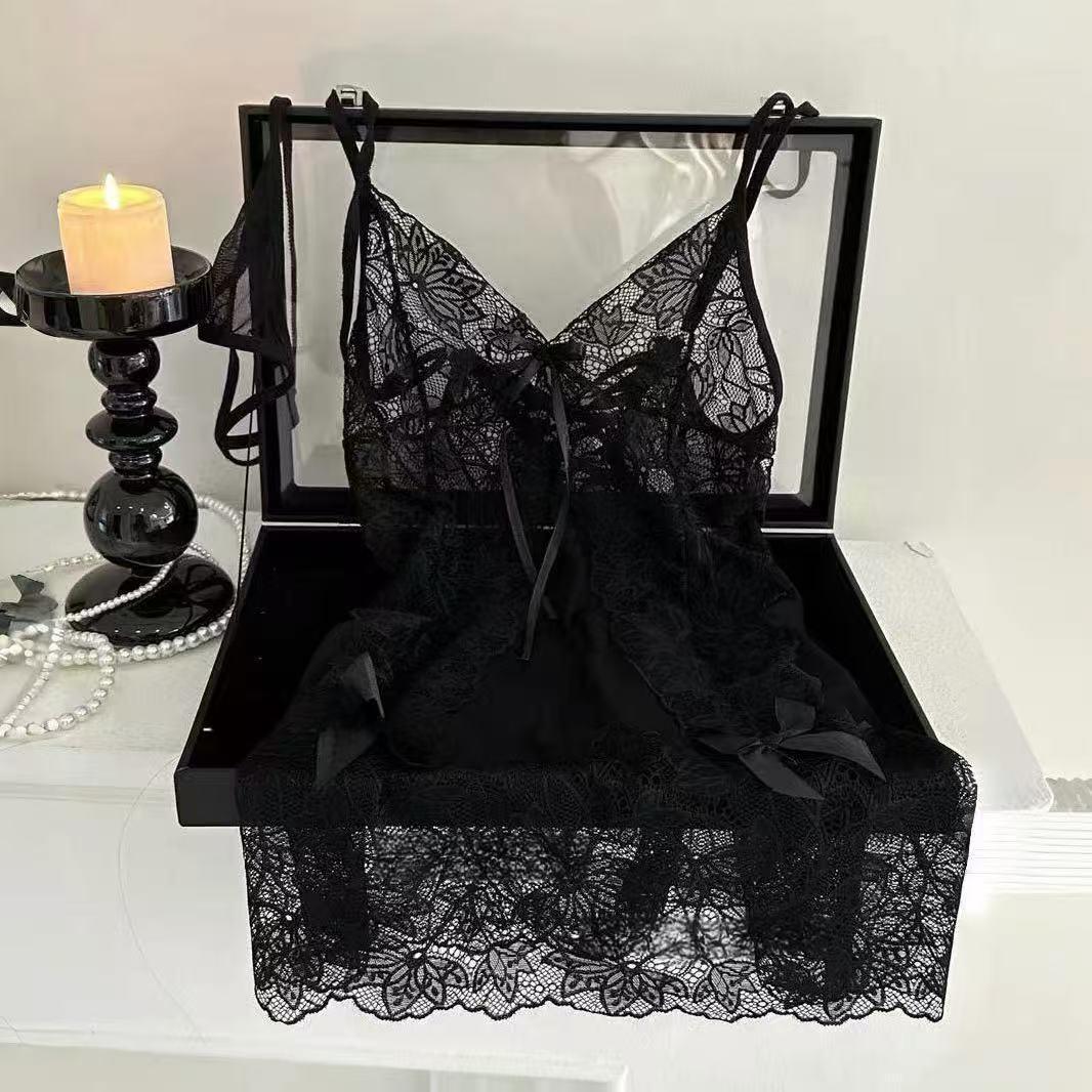 Mẫu đầm ngủ ren đen này là sự kết hợp hoàn hảo giữa vẻ ngọt ngào, thanh lịch và gợi cảm nhẹ nhàng. Với chất liệu voan mỏng xuyên thấu phối hoa ren viền, chiếc váy như ôm lấy từng đường cong mềm mại của cơ thể một cách tinh tế nhất.