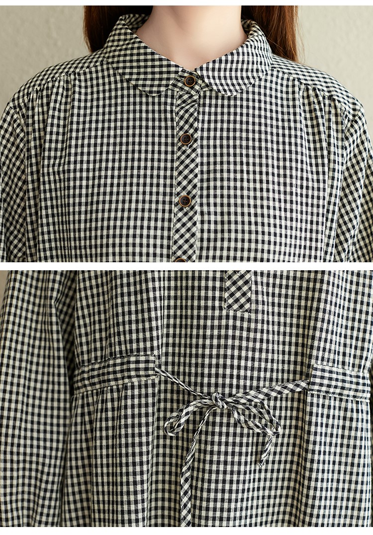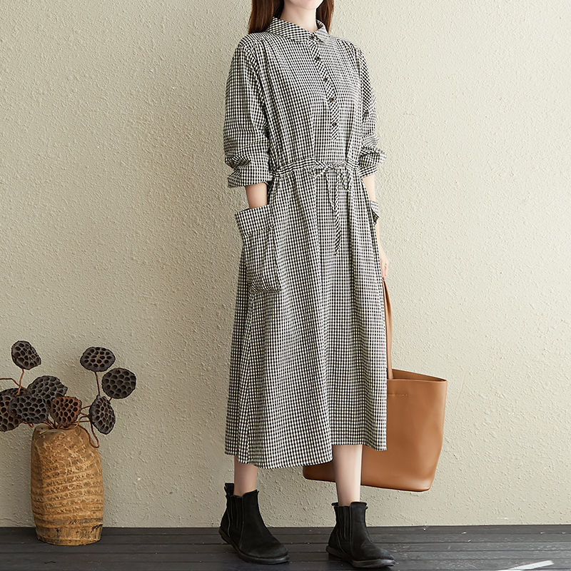 ✨Váy sơ mi dáng dài thắt eo – Đầm nữ form suông vintage kẻ caro phong cách công sở Haint Boutique Da187