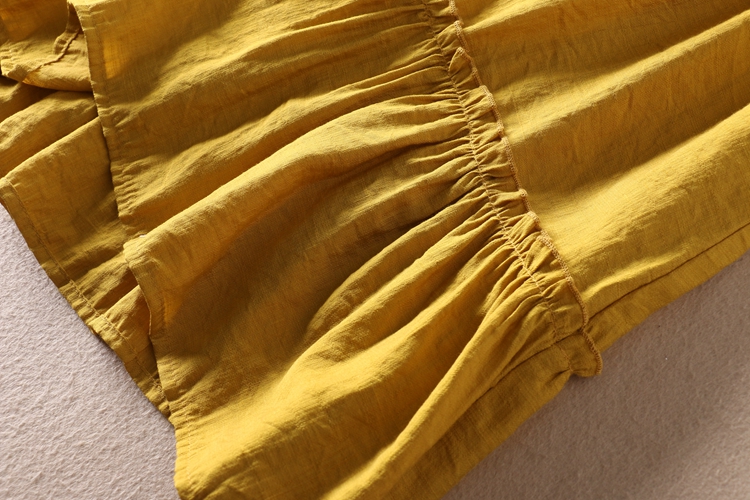 ღ THÔNG TIN SẢN PHẨM: Tên sản phẩm: Đầm babydoll vàng tay con Màu sắc: vàng Chất liệu: chất gân ý Chi tiết sản phẩm: không lót, không túi Thông