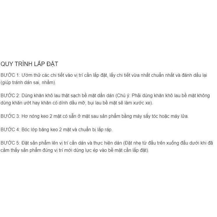Thông số kỹ thuật ✿ Chất liệu: sợi carbon/PVC ✿ Màu sắc: trong suốt, có logo theo từng hãng xe ✿ Trọng lượng: 100g ✿ Kích thước: miếng hõm cửa 9x9; miếng tay nắm 15x1.4cm ✿ Bộ sản phẩm: 4