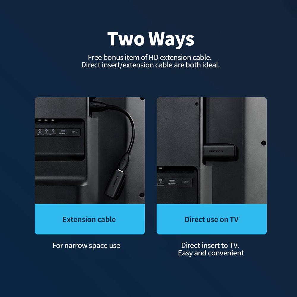 What Is Display Adapter for? Wireless connection with video, audio for real-time push. Satisfy various needs of work and entertainment. VENTION 2.4G WirelessHD Dongle enjoys 4K HD images and wide compatibility. You can use it