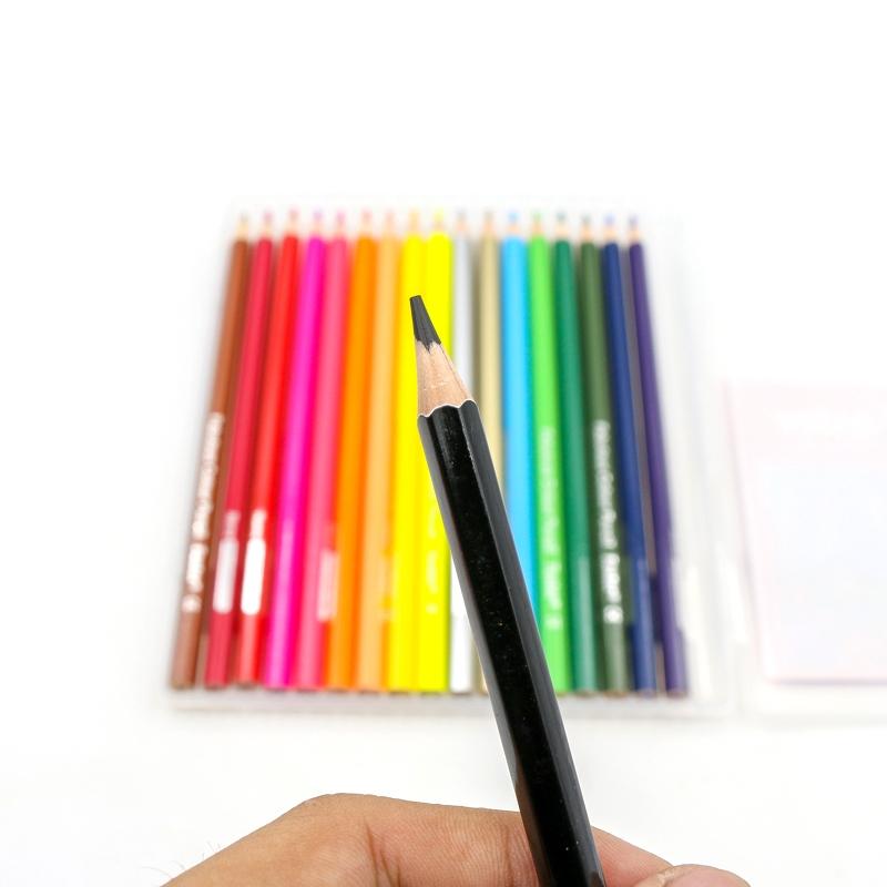 Thân bút cứng, không dễ bị gãy dù có tác động lực mạnh trong khi tô hay vô tình làm rơi sản phẩm. 18 cây màu được đặt trong hộp nhựa gọn gàng, lịch sự, dễ bảo quản và mang theo bên m.ình.