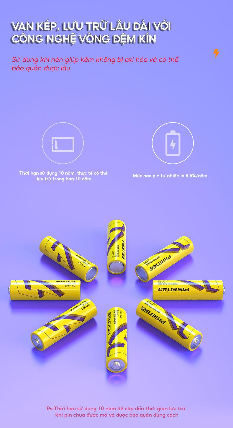 Vỉ 2 Pin Tiểu Pisen AA5 1.5V Super Heavy - Pisen LR6 - Pin khô Purple Gold AA5 (Pin Tiểu) LR6 1.5V Super Heavy không chứa chì . Vật liệu bên trong có độ tinh