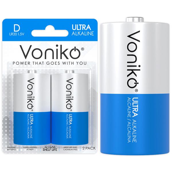 Vỉ 2 Pin Kiềm D 1.5V - Voniko - Pin loại D là một loại pin có kích thước lớn, thường được sử dụng trong các thiết bị điện tử như đèn pin, đồ chơi,