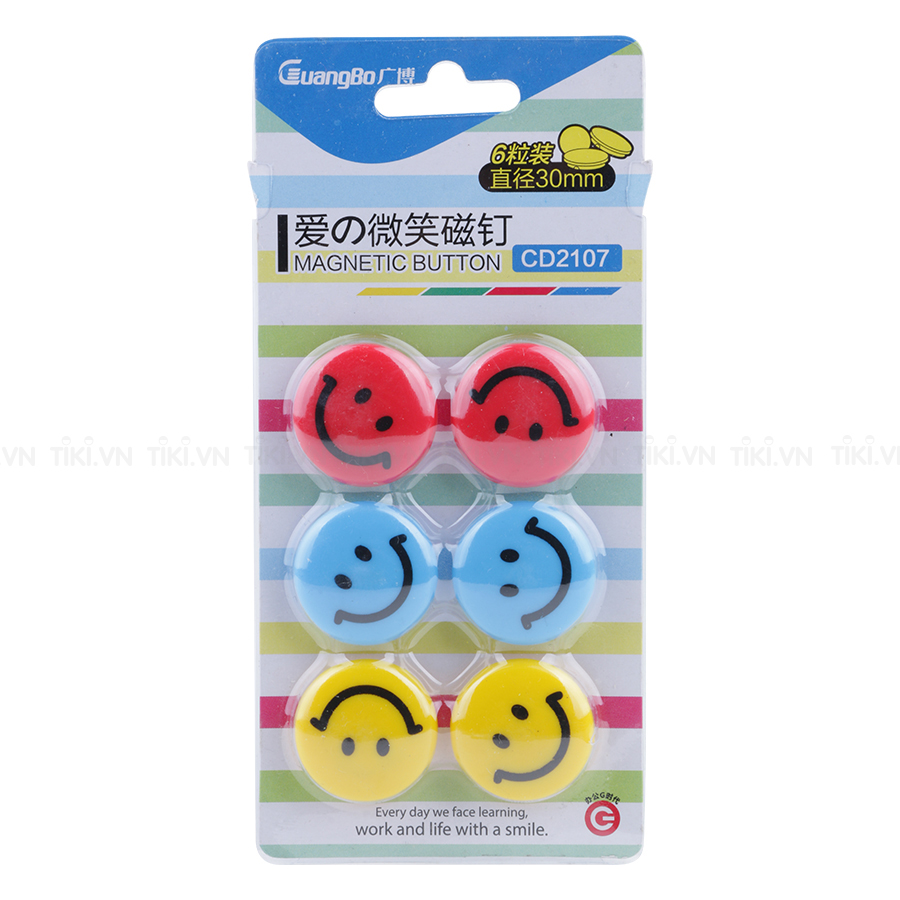 Vĩ Nam Châm Mặt Cười Guangbo Uyên Loan 30mm-2107 là sản phẩm chuyên sử dụng trên bề mặt sắt, bảng từ, dùng để hỗ trợ khi muốn gắn giấy ghi chú, tranh ảnh lên bảng để thông báo, giới thiệu, thuyết trình.