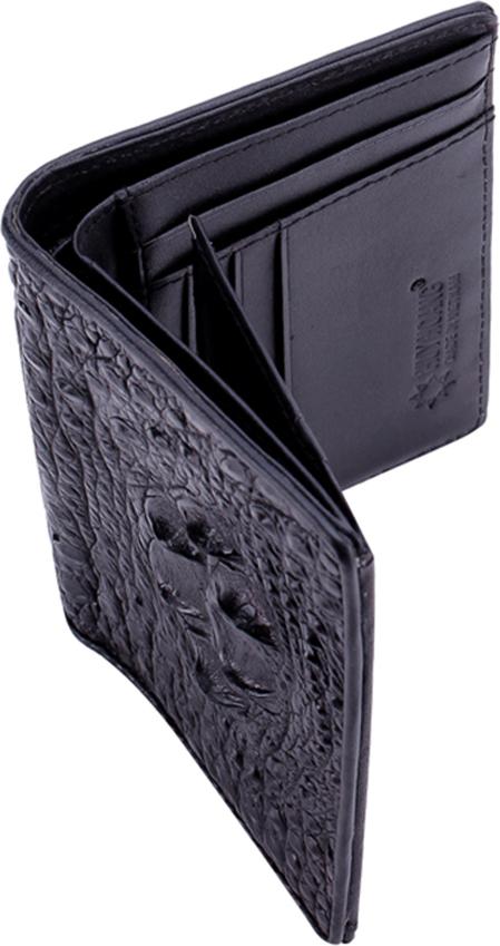 ✨Ví Nam Da Cá Sấu Nguyên Con Kiểu Đứng Huy Hoàng HT2236 (12.5 x 10 cm) - Đen