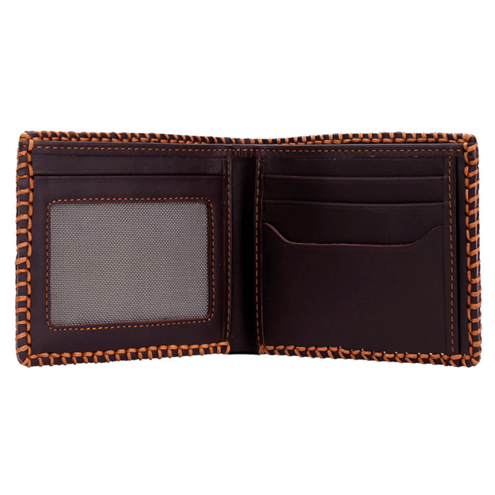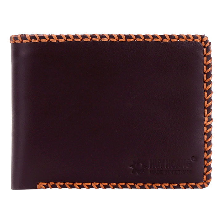 Ví/Bóp nam Huy Hoàng da bò đan viền màu nâu 2136