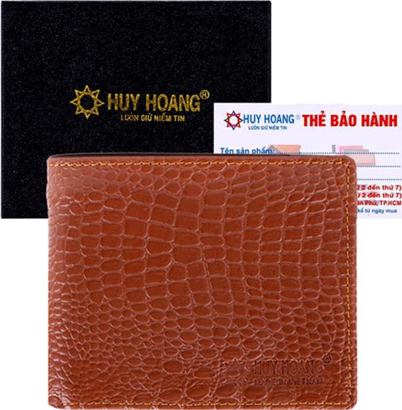 Ví/Bóp nam Huy Hoàng da bò vân cá sấu màu nâu 2112
