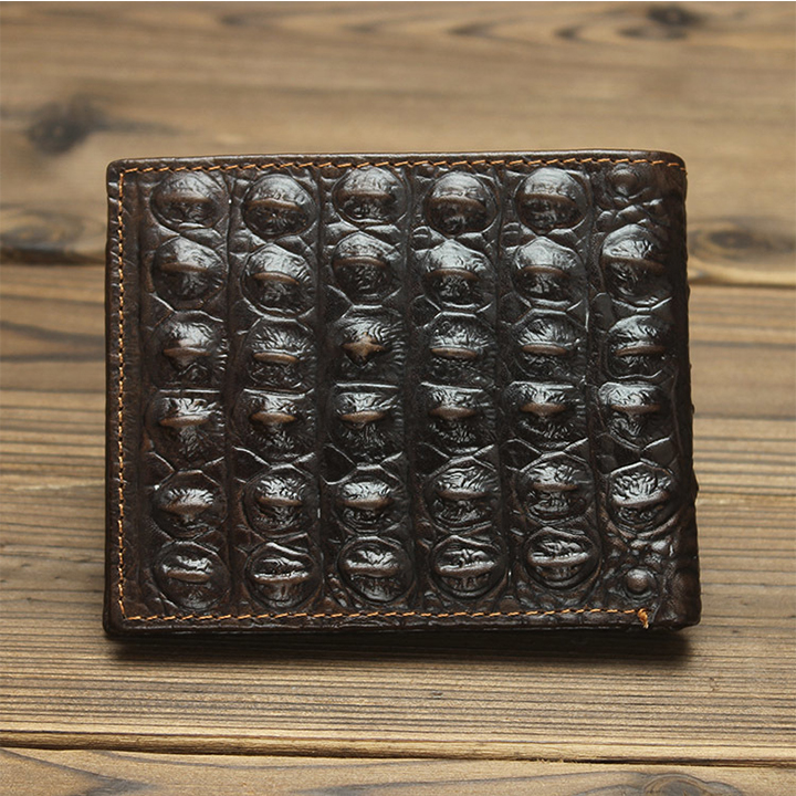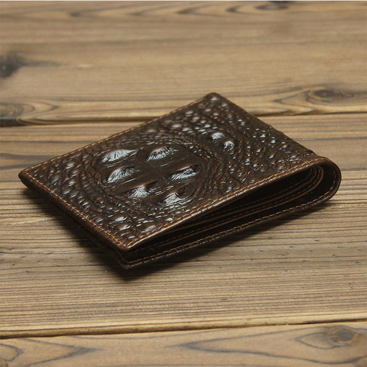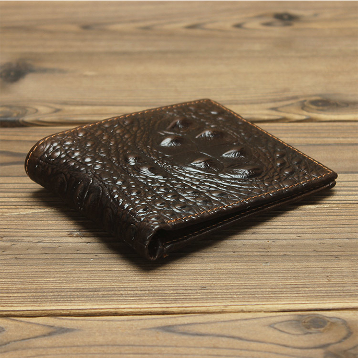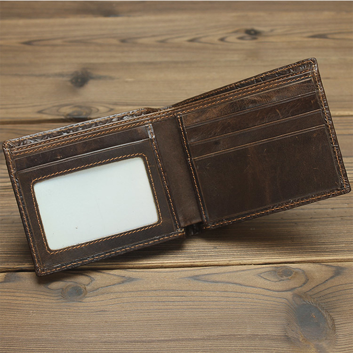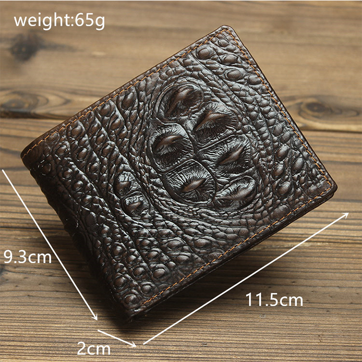 - Ví nam được làm bằng chất liệu da cá sấu cao cấp tạo kiểu dáng lạ mắt, sang trọng. - Thiết kế nhỏ gọn, thời trang, dạng ví nam xếp đôi, có nhiều ngăn