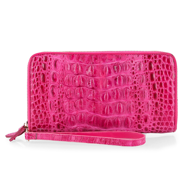 Ví cầm tay da cá sấu 2 khóa ngoài trong nhiều ngăn cho nam và nữ