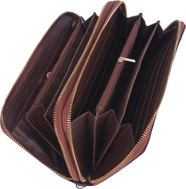 Ví/Bóp nữ da bò Huy Hoàng vân cá sấu nhiều ngăn màu nâu 3134