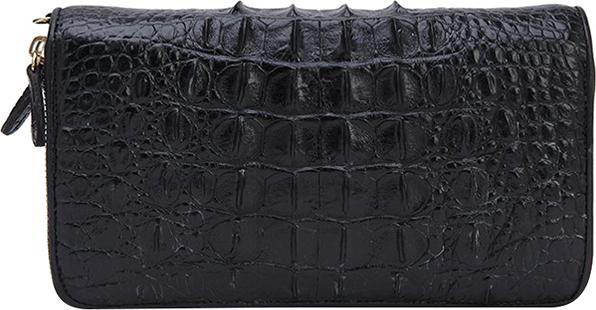 Ví/Bóp nữ da bò Huy Hoàng vân cá sấu nhỏ 1 khóa màu đen 3170