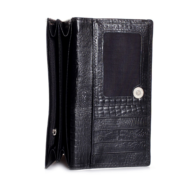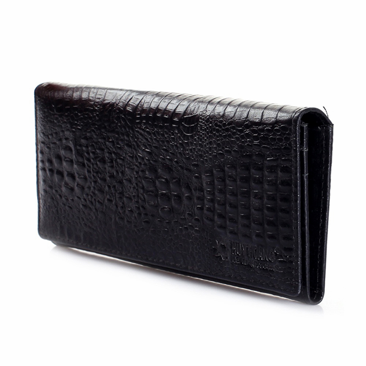 Ví/Bóp nữ Huy Hoàng da bò vân cá sấu 2 gấp màu đen 3102