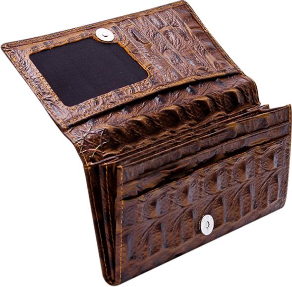 Ví/Bóp nữ vân cá sấu Huy Hoàng bấm nút màu nâu 3110