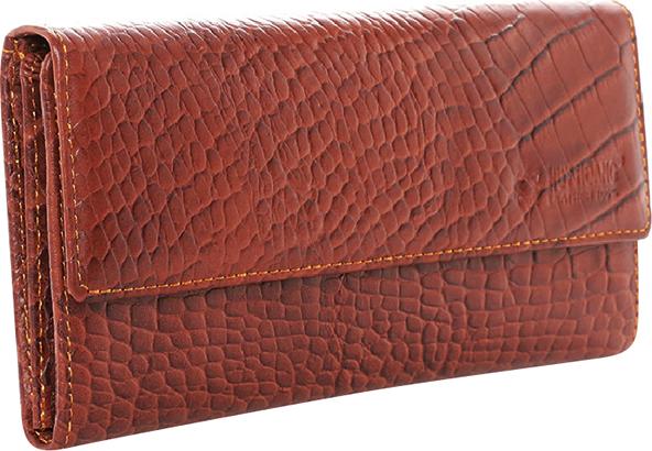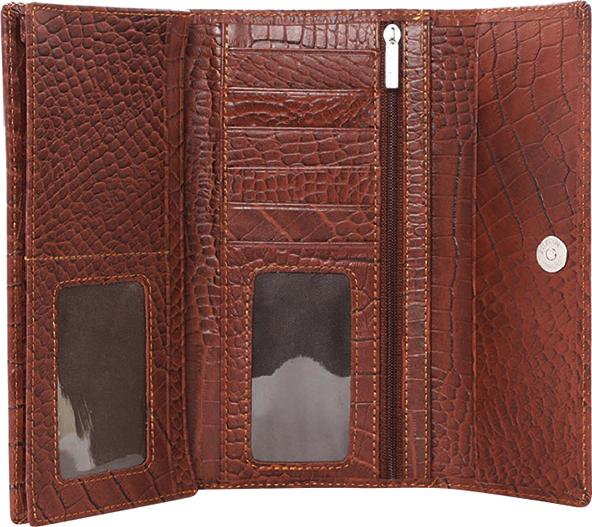 Ví/Bóp nữ da bò Huy Hoàng vân cá sấu lớn 3 gấp màu nâu đỏ 3169