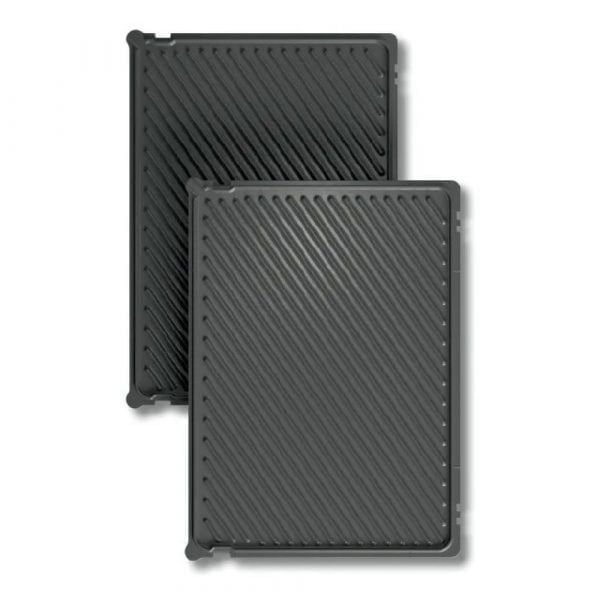 - Mở rộng 180° để trở thành vỉ nướng, phù hợp cho các bữa tiệc BBQ tại nhà. Bề mặt nướng được phủ chống dính cao cấp, giúp thực phẩm không bám dính và dễ dàng vệ sinh. Khay hứng mỡ thừa tháo rời giúp giảm dầu mỡ, đảm bảo thực phẩm lành mạnh hơn. Sản phẩm còn được trang bị nhiều tiện ích an toàn: