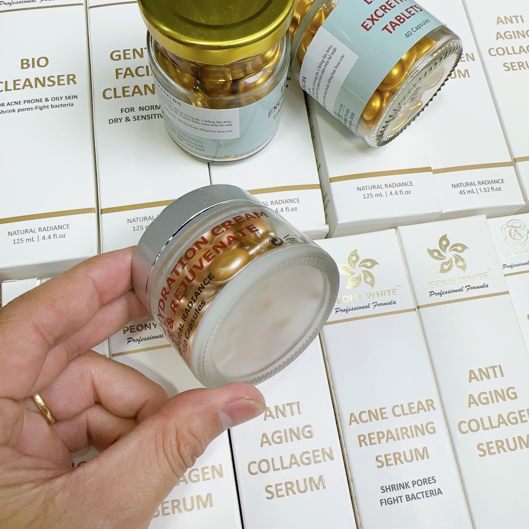 Viên Dưỡng Trắng Da PEONY WHITE 30v - Bù Nước - Chống Lão Hóa - Cân Bằng Độ pH - Cấp Ẩm - Giải Pháp Cho Làn Da Khô Ráp Trắng sáng ngay kéo dài suốt 24h Da mềm mịn như da em bé (đặc biệt tốt cho những bạn da khô vào mùa hanh khô nhé) Giữ nước cho da suốt quá trình dùng sản phẩm ( nhờ đó cải thiện được tình trạng da khô cho bạn) Cải thiện tình trạng lão hóa tự nhiên của da, trẻ hóa da Chỉ một bước đơn giản dùng sản phẩm mà không cần makeup bạn nhé! HƯỚNG DẪN SD: Sau khi bạn đã làm sạch mặt vào mỗi buổi sáng và buổi chiều tối trong ngày. Lấy lượng tinh chất thoa đều lên trên bề mặt da. Dùng tay nhẹ nhàng vỗ nhẹ cho đến khi tinh chất đã được thẩm thấu hoàn toàn vào da. HƯỚNG DẪN BQ :