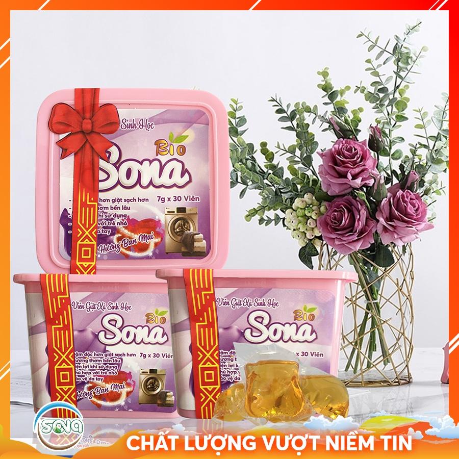 Viên giặt xả sinh học SONA giặt xả quần áo 2 trong 1 hộp 30 viên lưu hương lâu làm mềm vải an toàn cho da diệt vi khuẩn