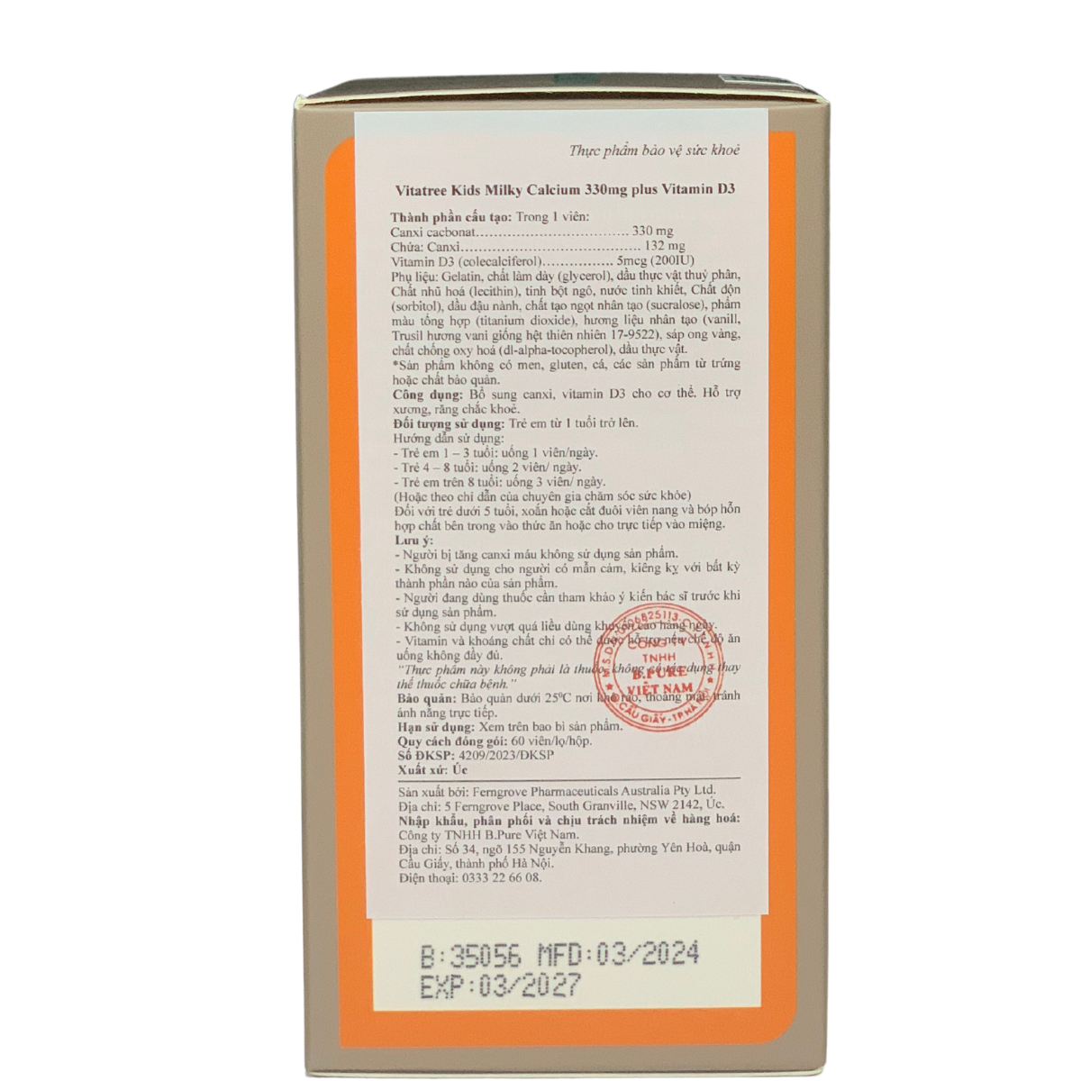 - Thực phẩm bảo vệ sức khoẻ Kids Super Milky Calcium 330mg plus Vitamin D3 - giải pháp hoàn hảo để giúp bé có hệ xương răng chắc khỏe. Với thành phần canxi và vitamin D3, sản phẩm nhập khẩu từ Úc này sẽ đồng hành cùng bé trong giai đoạn phát triển quan trọng. Thông tin sản phẩm