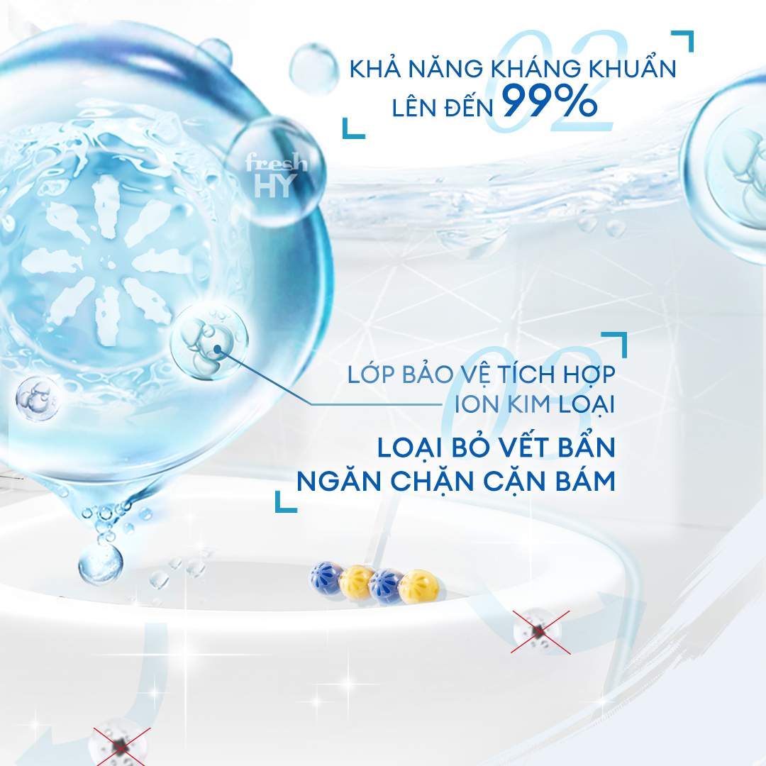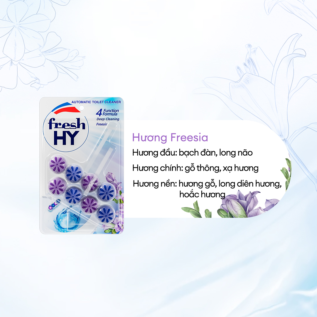 Mua tại TiktokViên Tẩy Bồn Cầu Fresh HY 350 Lần Xả, Làm Sạch Khuẩn & Ngăn Ngừa Mảng Bám, Khử Mùi Và Lưu Hương Thơm Mát (2 Vỉ Treo) Công thức 4 chức năng 1. Làm sạch toilet mỗi lần xả nước. 2. Công thức giúp ngăn ngừa sự hình thành cặn vôi. 3. Giúp ngăn ngừa bụi bẩn mới bám vào bề mặt. 4. Lưu hương thơm tươi mát lâu dài trong phòng tắm.