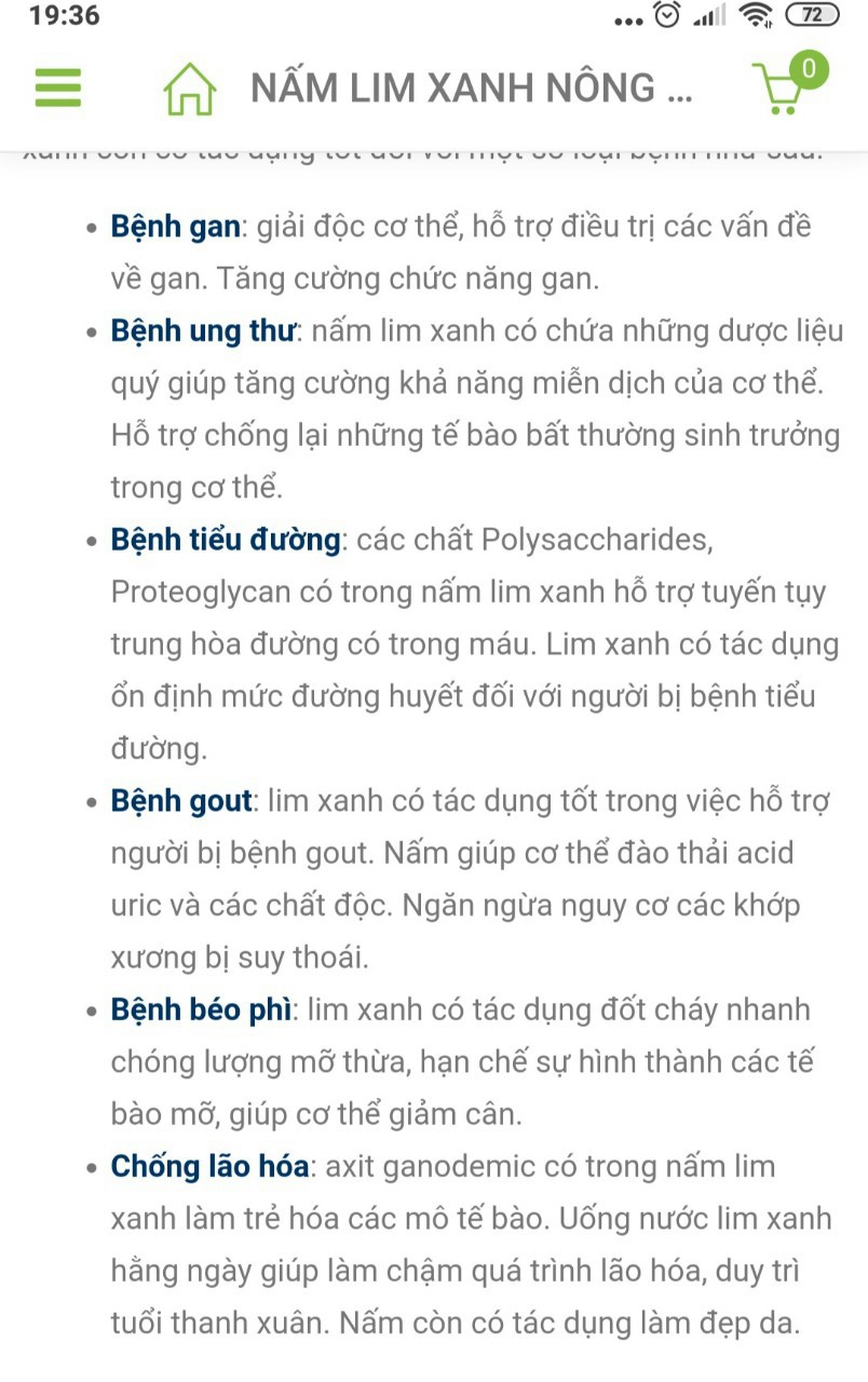 Mua tại TiktokNẤM LIM XANH: là một trong nhiều loại Nấm Linh Chi, tên khoa học của nó là Ganoderma Lucidum. Hợp chất Ganopoly trong nấm Lim Xanh công dụng làm giảm mức độ của virus siêu vi B (HBV). Bảo vệ và tăng cường chức năng của gan và thận. Hỗ trợ các bệnh về gan, viêm gan mãn tính, gan nhiễm mỡ, men gan cao, viêm thận. NẤM LIM XANH CÓ TÁC DỤNG VỚI MỘT SỐ LOẠI BỆNH NHƯ SAU: