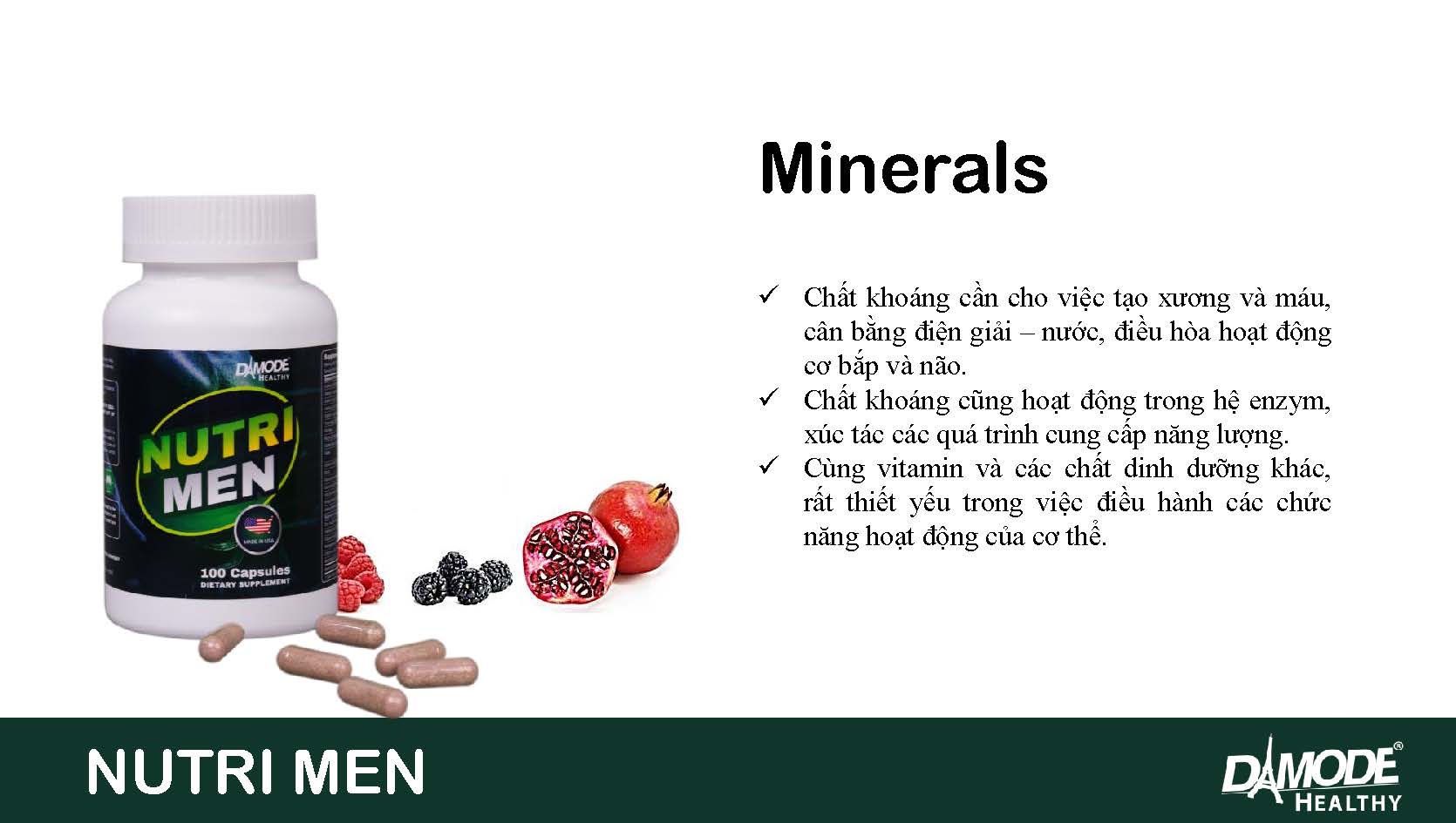 Nutri Men là thực phẩm chức năng bổ xung các khoáng chất và vitamin cần thiết cho cơ thể nam giới mỗi ngày.