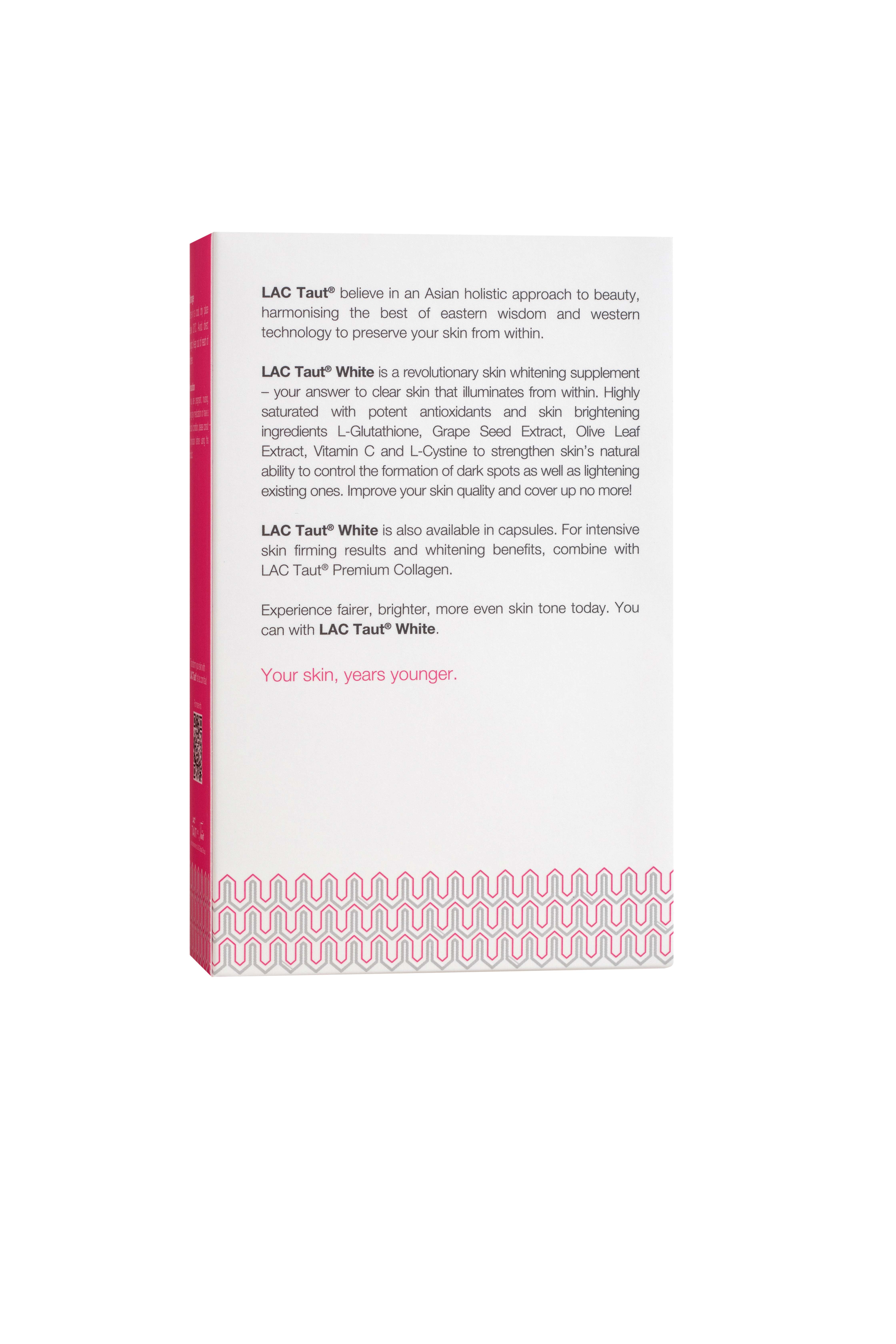 Với công thức tiên tiến gồm các chất chống oxy hóa đậm đặc và các thành phần phục hồi da như L-Glutathione, Chiết xuất hạt nho, Chiết xuất lá ô liu, Vitamin C và chiết xuất Atisô, LAC Taut White kiểm soát sự hình thành thâm nám và khuyết điểm, mang lại làn da sáng mịn, rõ ràng và tươi sáng hơn trước.
