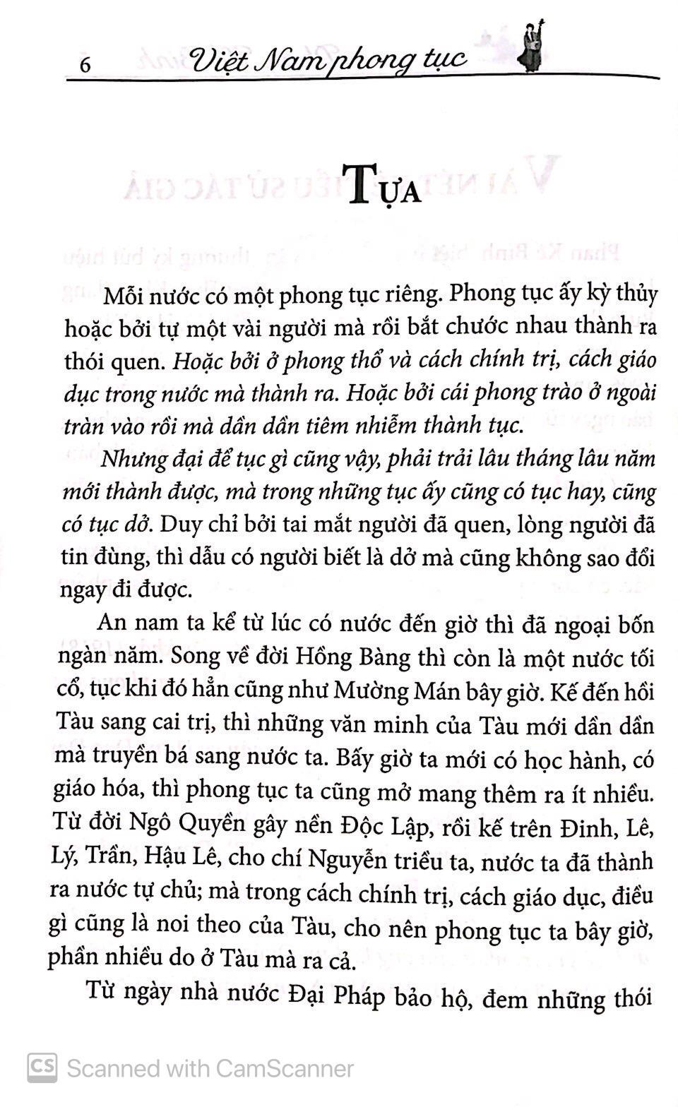 Ấn bản đầy đủ nhất của “Việt Nam phong tục” - tập khảo cứu toàn diện về phong tục, tập quán của người Việt xưa của học giả Phan Kế Bính. Tập sách có thêm phần chú giải, hiệu chỉnh giúp độc giả ngày nay có thể hiểu rõ hơn tác phẩm.