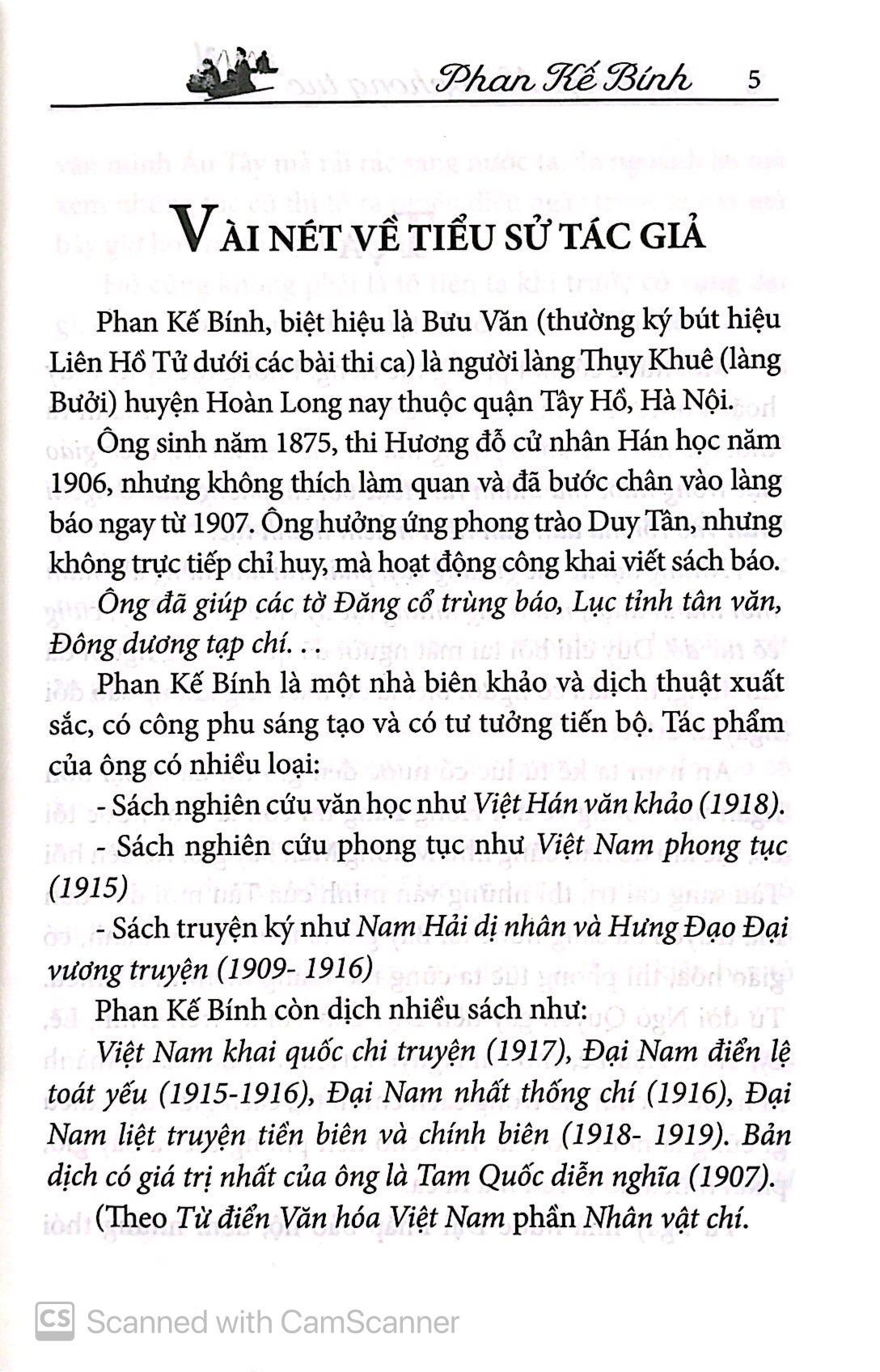Phan Kế Bính (1875 – 1921), hiệu là Bưu Văn, quê ở làng Thụy Khê, huyện Hoàn Long, tỉnh Hà Đông