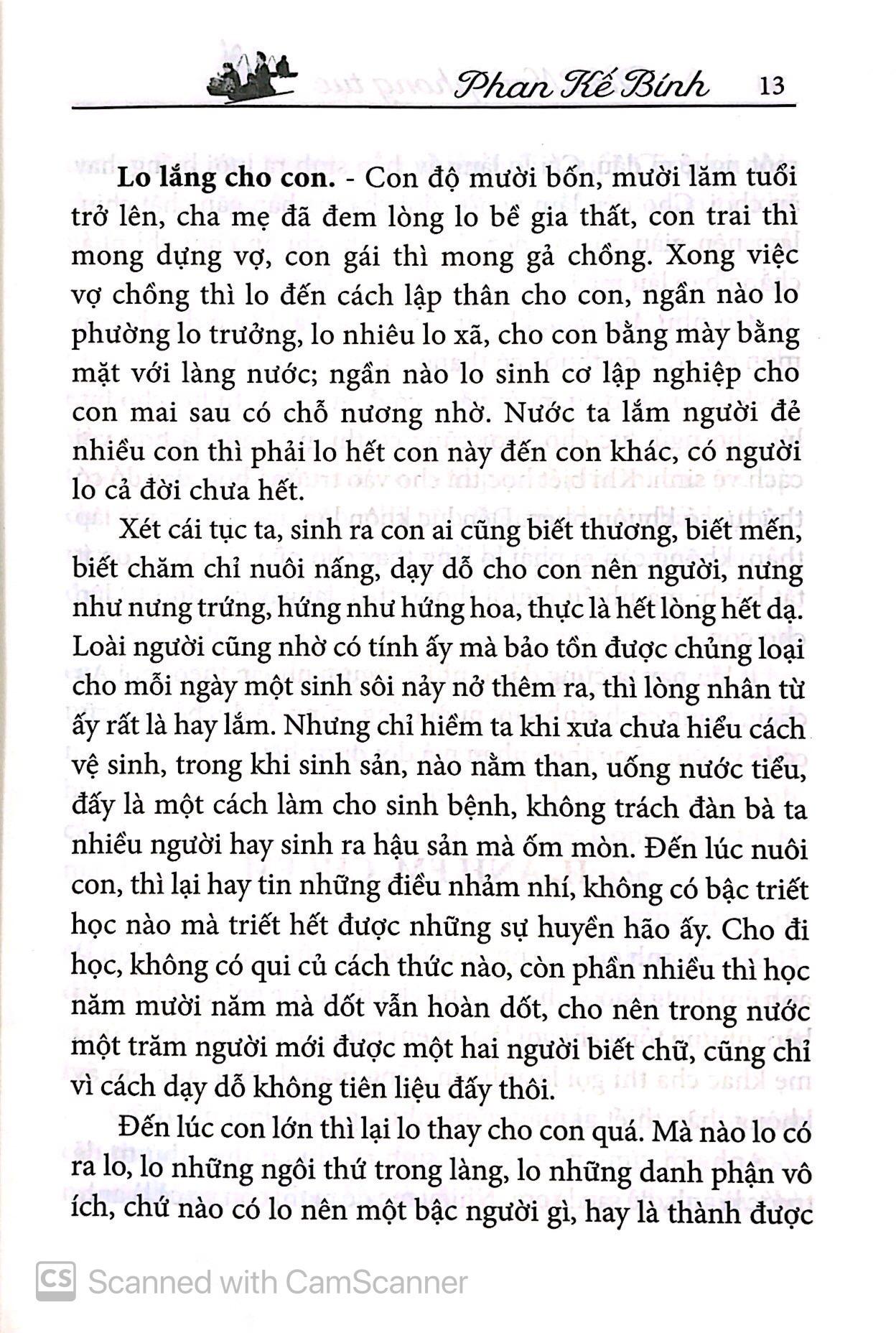 Đó cũng không phải là tổ tiên ta khi trước có vụng dại gì, chỉ là thời thế mỗi lúc một khác, mà mỗi lần biến cải thì cái trình độ khai hóa lại tấn tới thêm lên một tầng. Ấy cũng là cái lẽ tự nhiên của tạo hóa như thế.